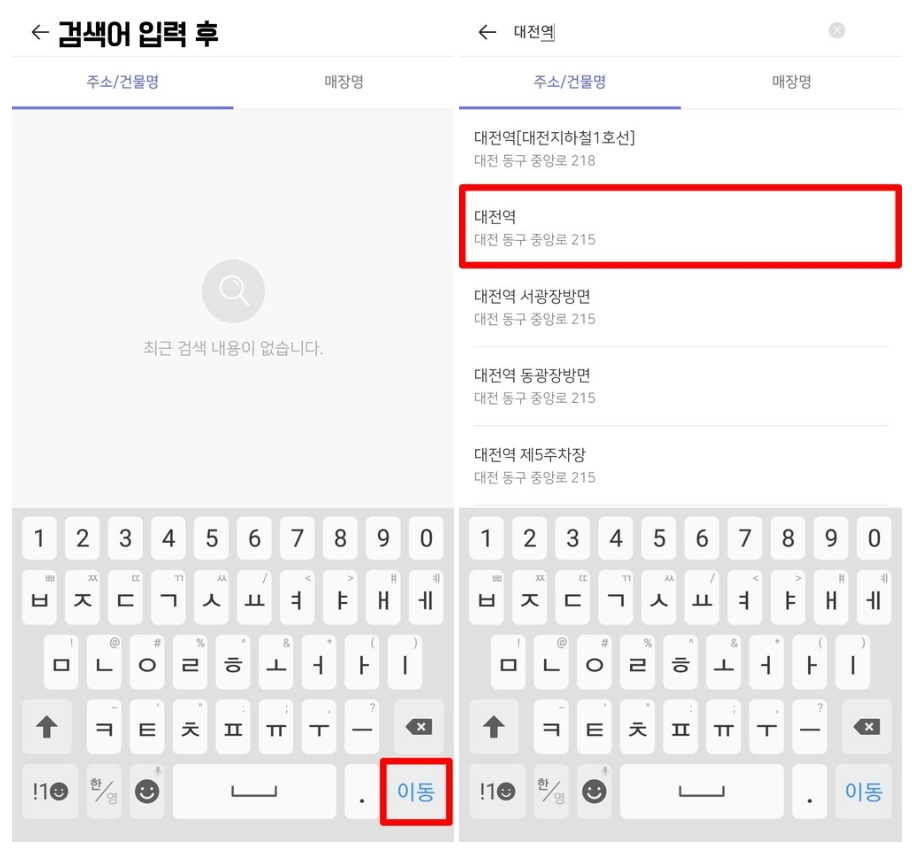 관심 지역으로 등록하고 싶은 주소 또는 건물명을 검색하여 원하는 장소를 선택합니다.