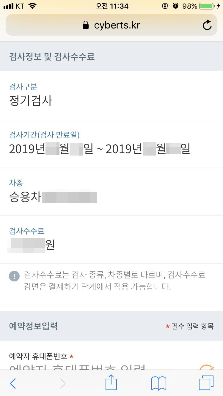카드결제가 편리한 모바일에서 해 보는 자동차검사 예약하기
