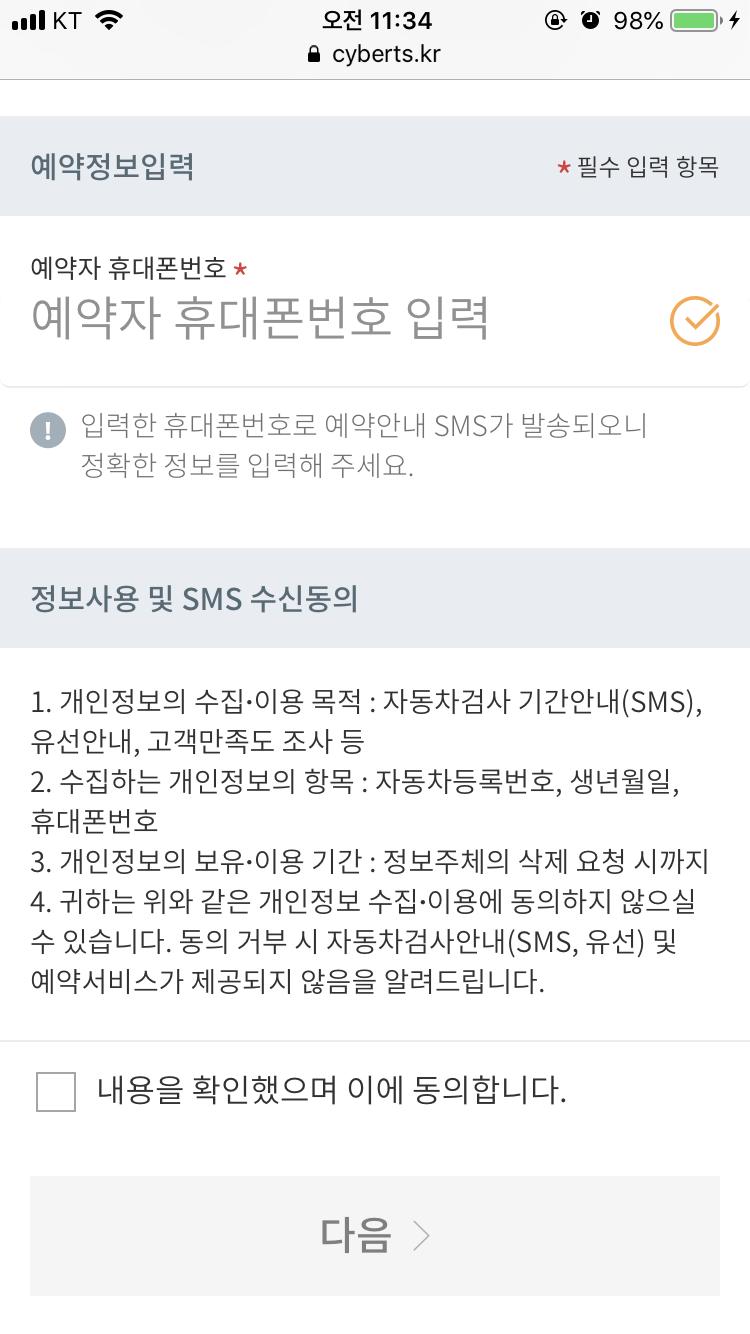 화면을 아래로 내려 예약자 휴대폰번호를 입력
