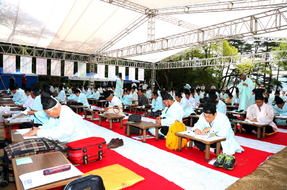 이번 과거시험 재현행사에는 지난 3일까지 신청을 받아 전국의 한시인 200여 명이 참가 신청을 했다. 도포와 유건 차림의 참가자들이 도산서원 앞마당에 마련된 자리에 줄을 지어 앉아 약 2시간에 걸쳐 시험을 치른다. 수거된 답안지는 전교당으로 전달되어 시관(試官)들이 채점을 하고, 성적이 적힌 과방(科榜)을 붙인 다음 시상을 할 예정이다.