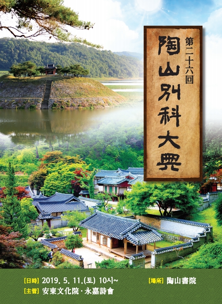 오는 5월 11일(토) 제26회 도산별과(陶山別科) 재현행사를 안동시 도산면 소재 도산서원 앞마당에서 개최한다. 당시 만여 명의 유생들이 모여들었던 소나무 숲은 안동댐 건설로 수몰이 되었지만, 이를 기념하기 위해 세워진 시사단(試士壇)을 배경으로 행사가 열린다.