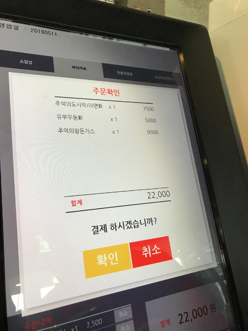 앞에 주문하는 분이 있어 자연스럽게(?) 무인 포스기 앞에 섰다.