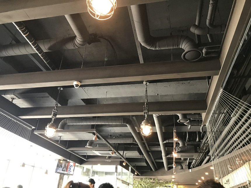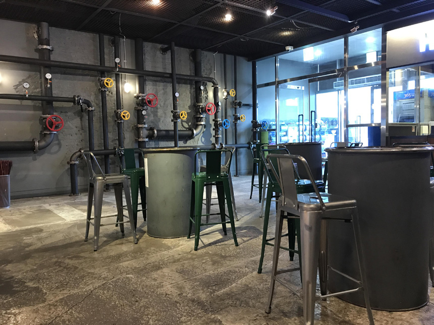 천장, 바닥, 테이블, 의자까지 공장 컨셉
