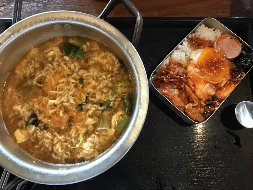 옛날 추억의 도시락과 라면이 같이 나온다.