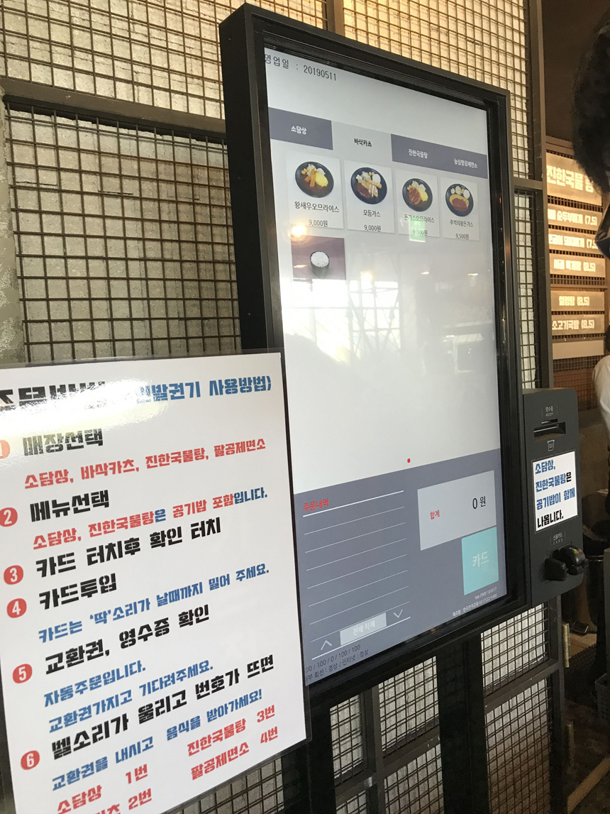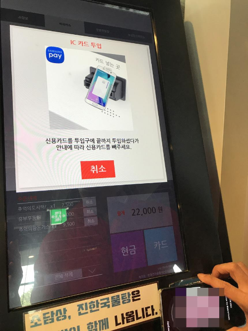 메뉴 선택이 끝났으면 카드 투입구에 실물카드를 넣고 결제하면 된다.