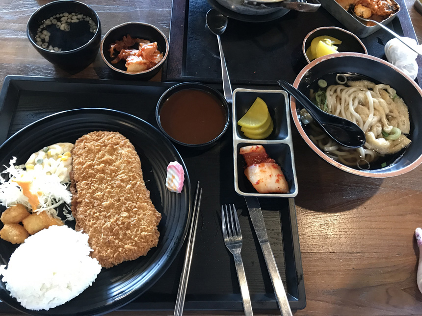왕돈가스와 유부우동을 선택하고 이 곳의 인기 메뉴인 추억의 도시락도 추가했다.