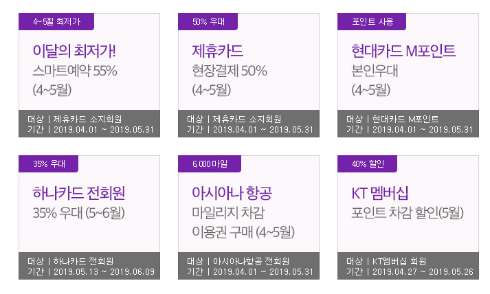 아래 제휴카드를 확인 후 이용권 구매하세요^^