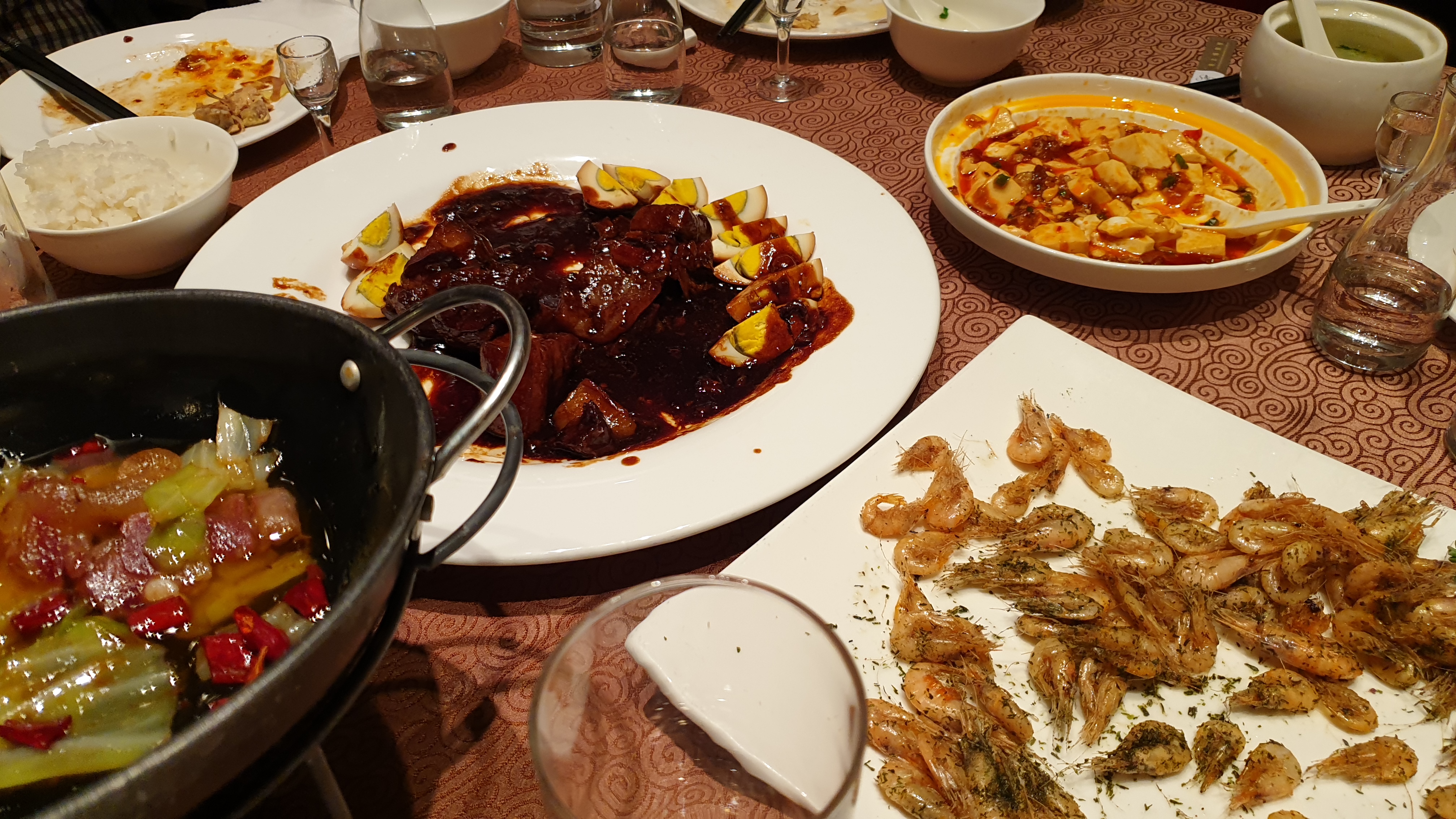 상해 고급식당이라고 하네, 주문한 고량주를 한 명씩 작은 병과 작은 잔으로 가져다준다. 이것도 색다른 경험이다. 각자 마실만큼 적당하게, 하지만 술술 넘어가는 바람에 작다고 생각한 한 병을 결국 모두 비웠다. 그 술 참 개운하네.