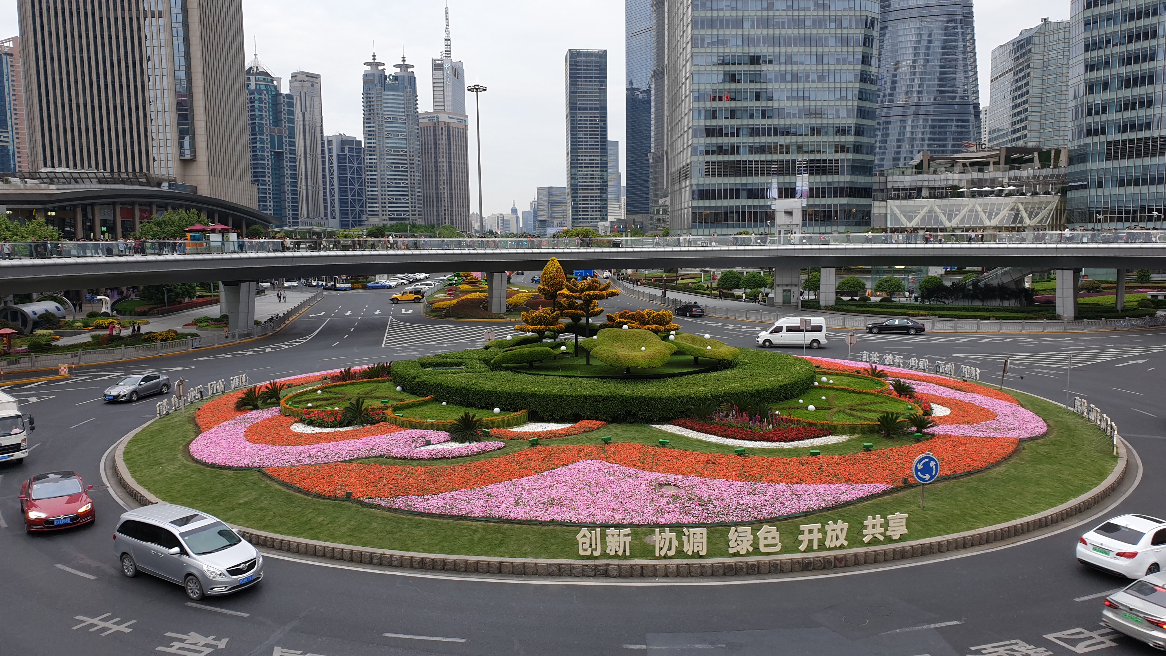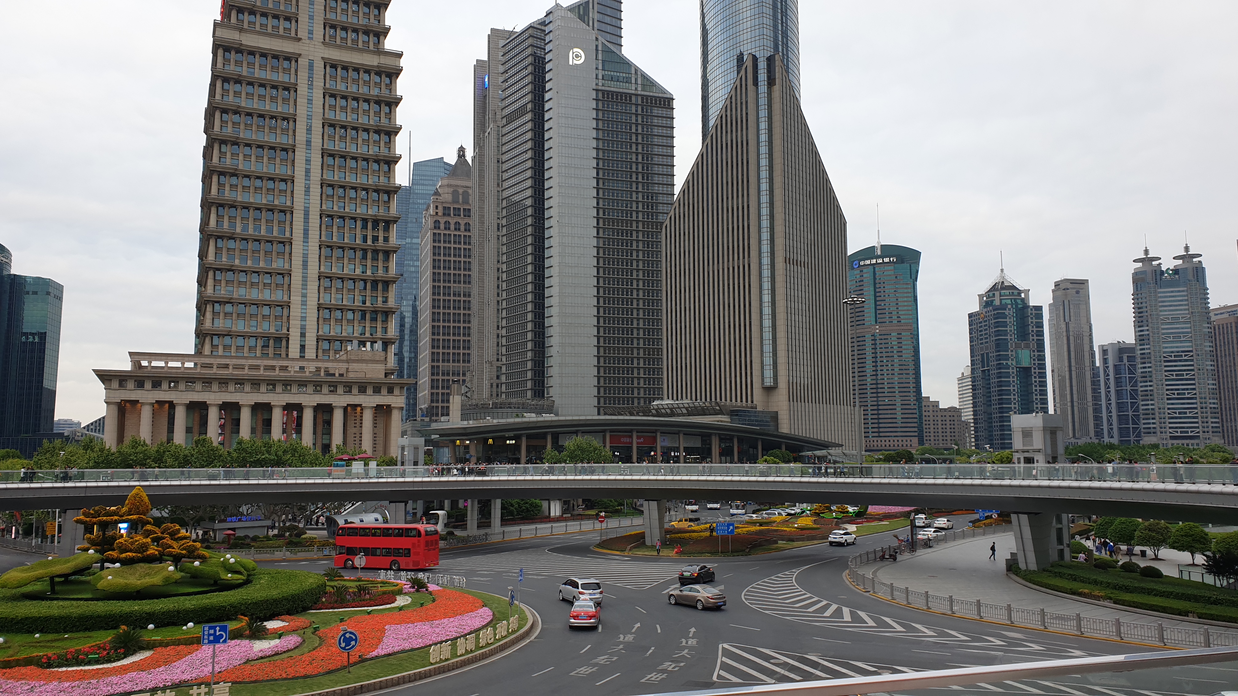 동방명주 앞에는 2010년 상해 엑스포 기간에 신설된 공중회랑(원형육교)이 있다.