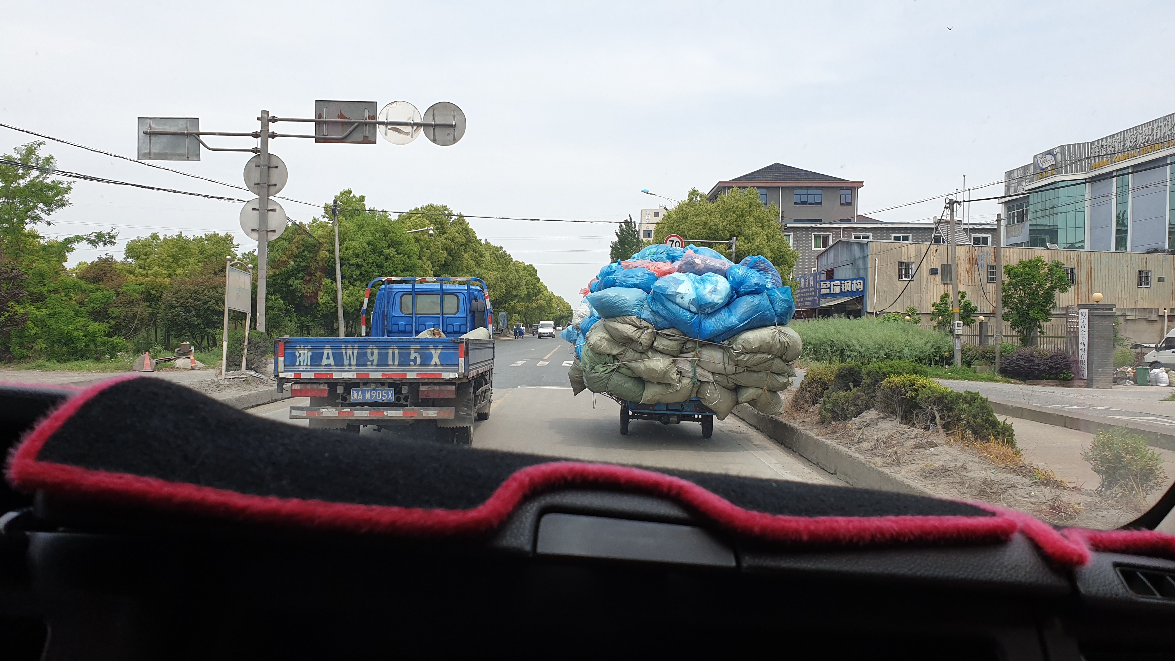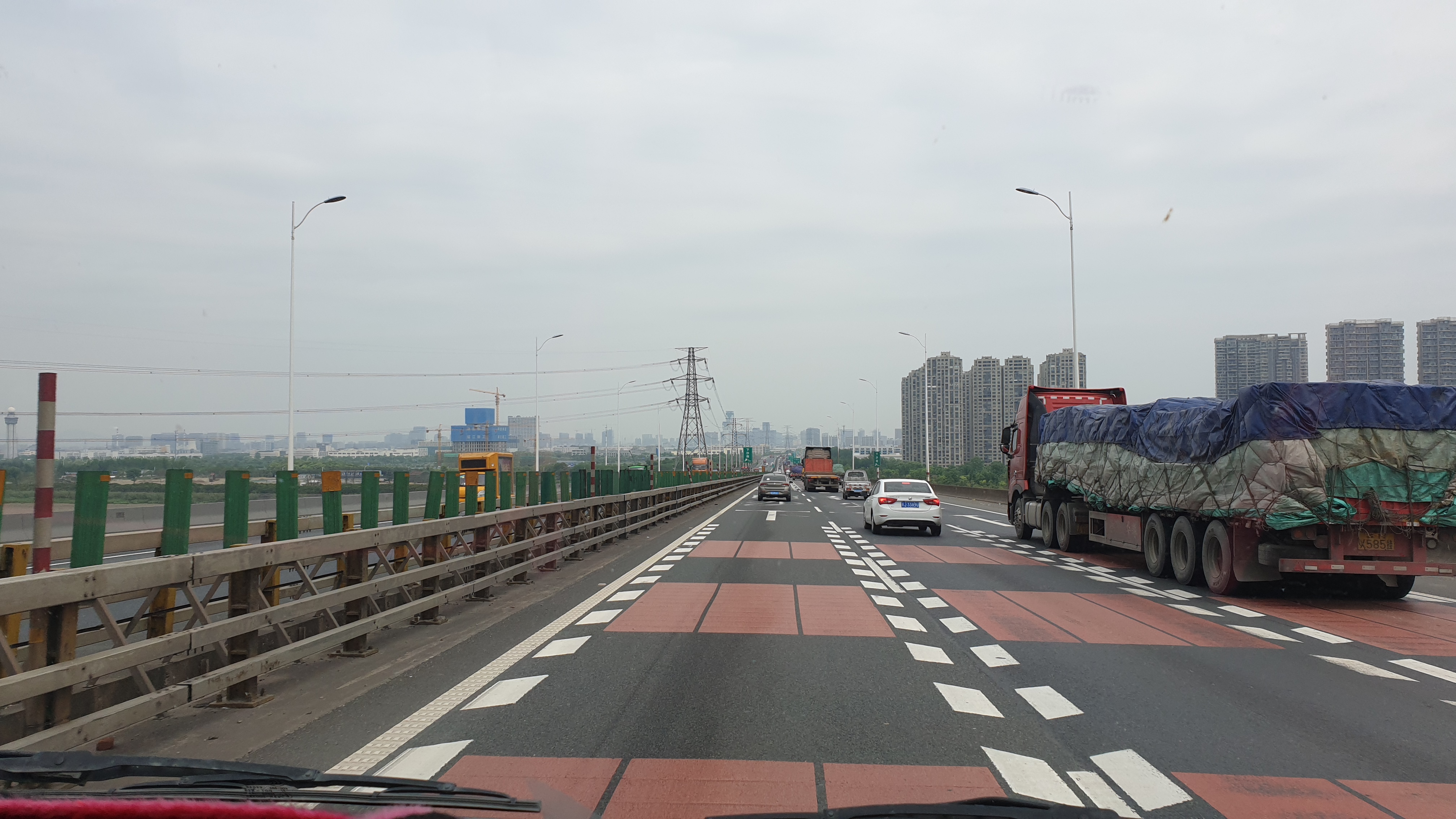 고속도로 중간에 사고로 인해 잠시 접어든 국도에서 본 트럭.. 웃음 사이트에서 본듯한 규모로 바퀴가 보이지 않을 정도로 짐을 싣고 이동하고 있다. 역시 잘 쌓는군.