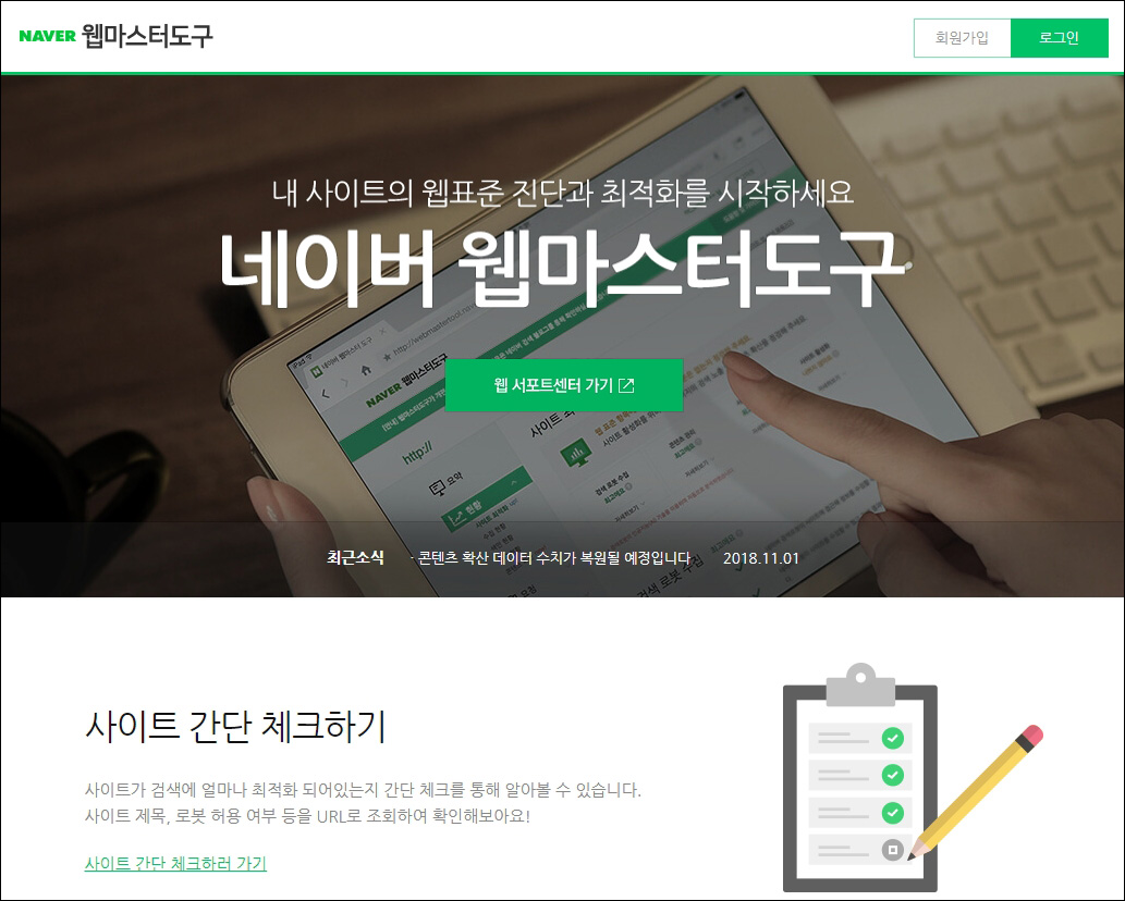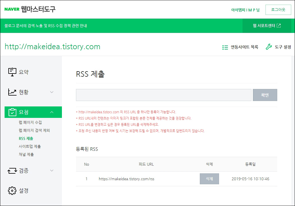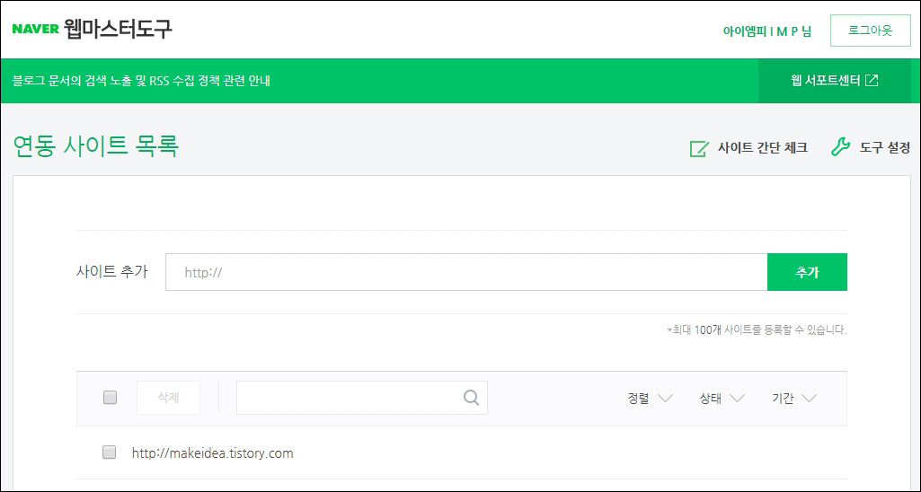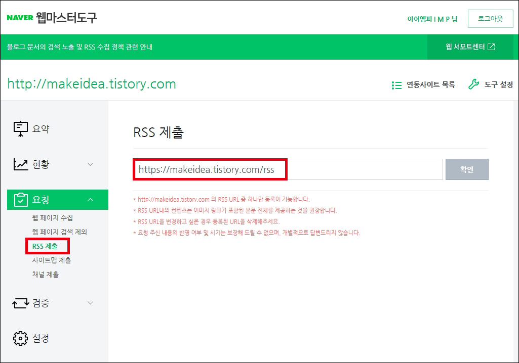 우선 네이버 웹마스터도구에 들어가서 확인.