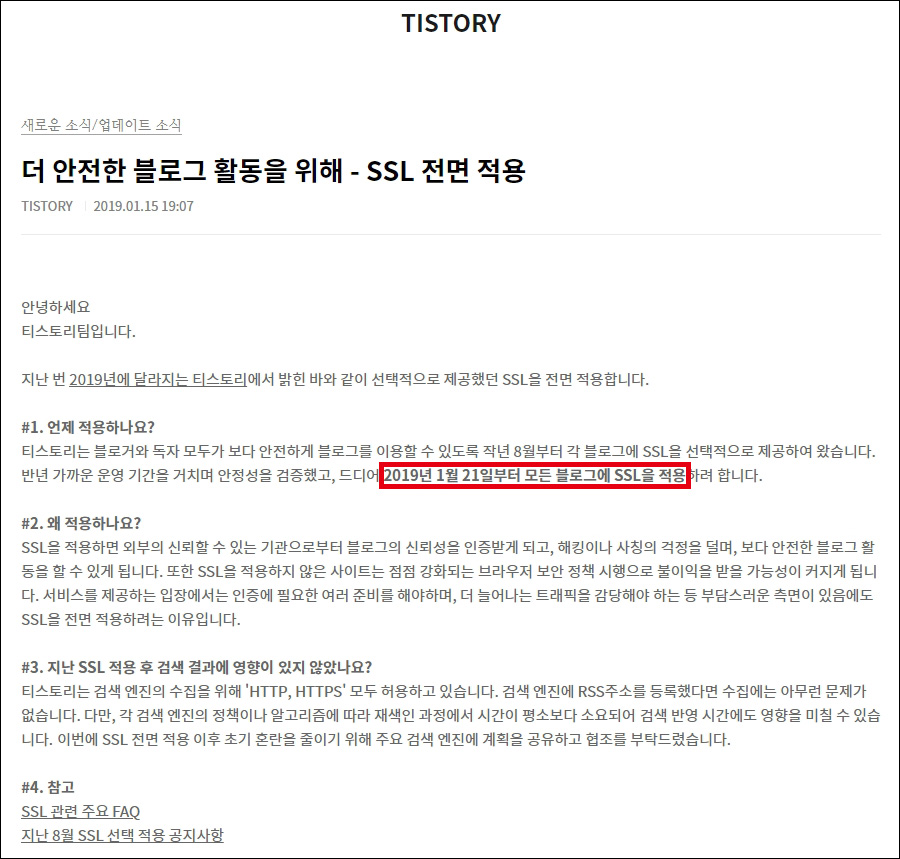 그랬다. 올해초에 SSL을 적용하면서 티스토리 주소가 http:// 에서 https://로 변경됐었다.