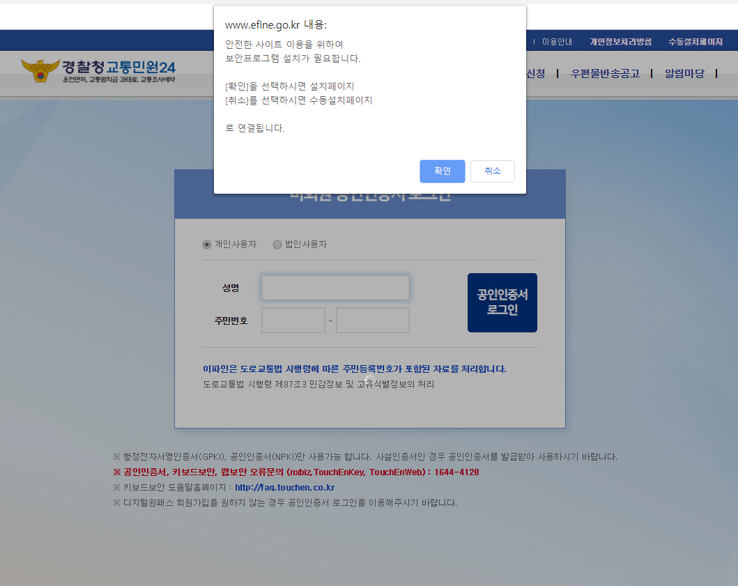 경찰청 이파인 - https://www.efine.go.kr/main/main.do