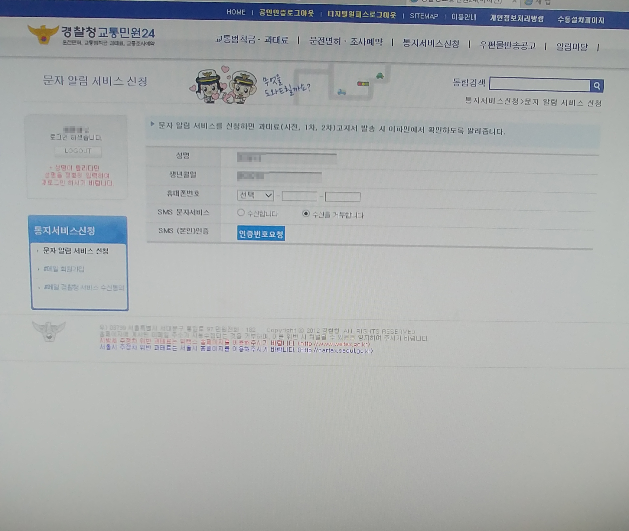 교통법규위반사항을 SMS문자로 알려주는 서비스이니