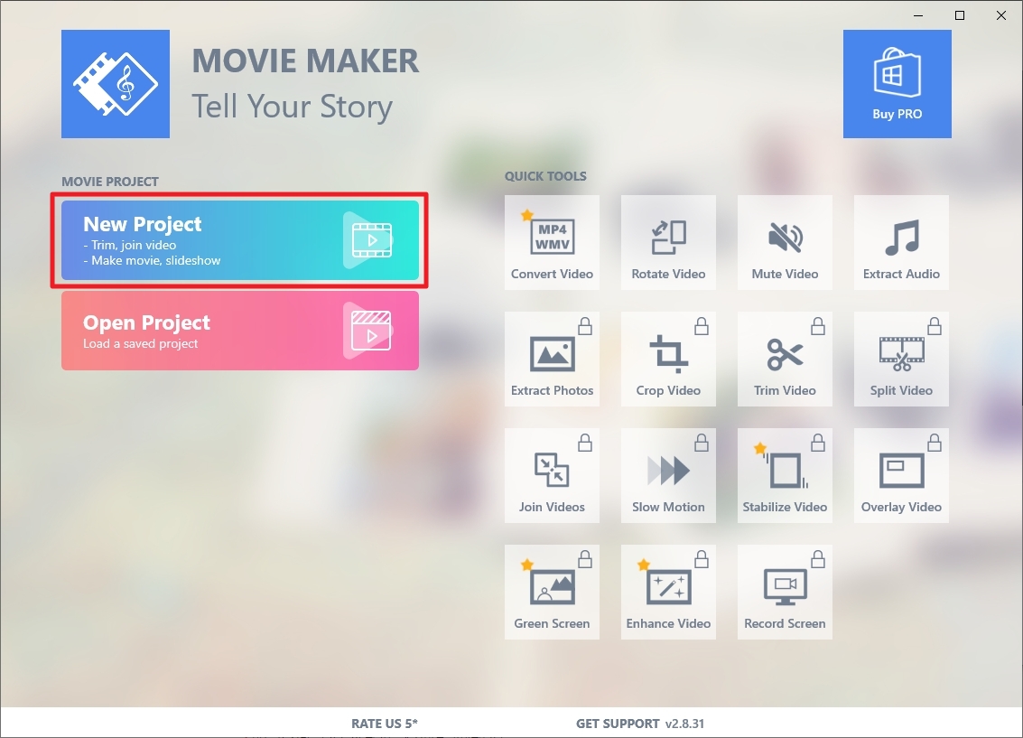 모든 기능을 다 사용할 수 있는 무비메이커 PRO 버전은 구매 후 사용 할 수 있다.
