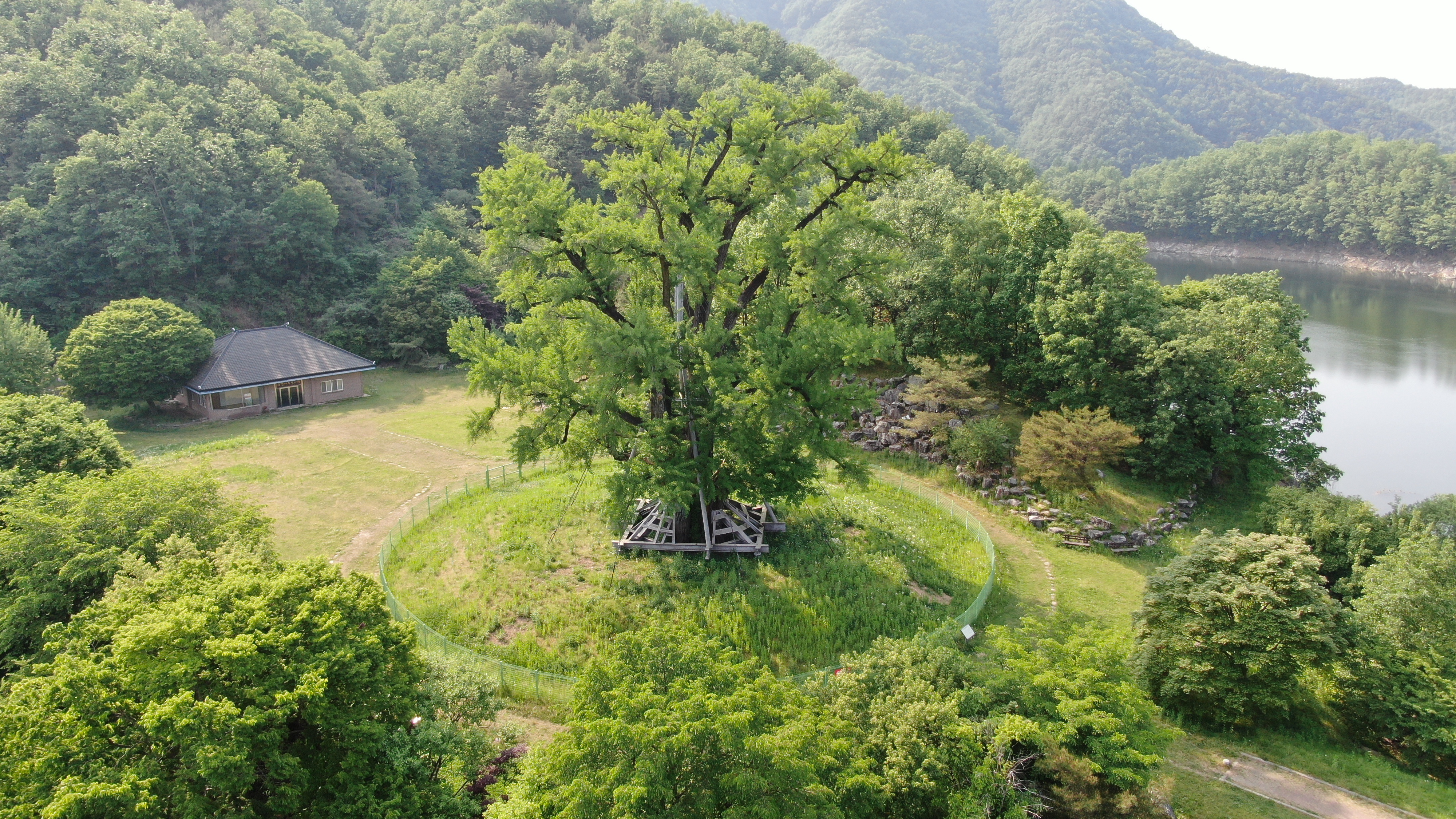 그러나 수몰 위기를 이겨내고 계절마다 색색깔 옷을 갈아입으며 예전보다 하늘과 15m 더 가까워진 채로 여전히 고향을 지키고 서 있다.