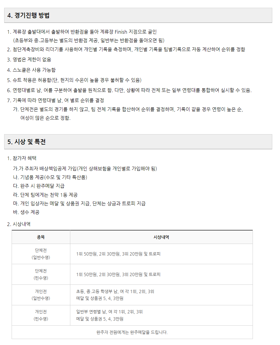 안동 낙동강변 전국 수영대회 요강