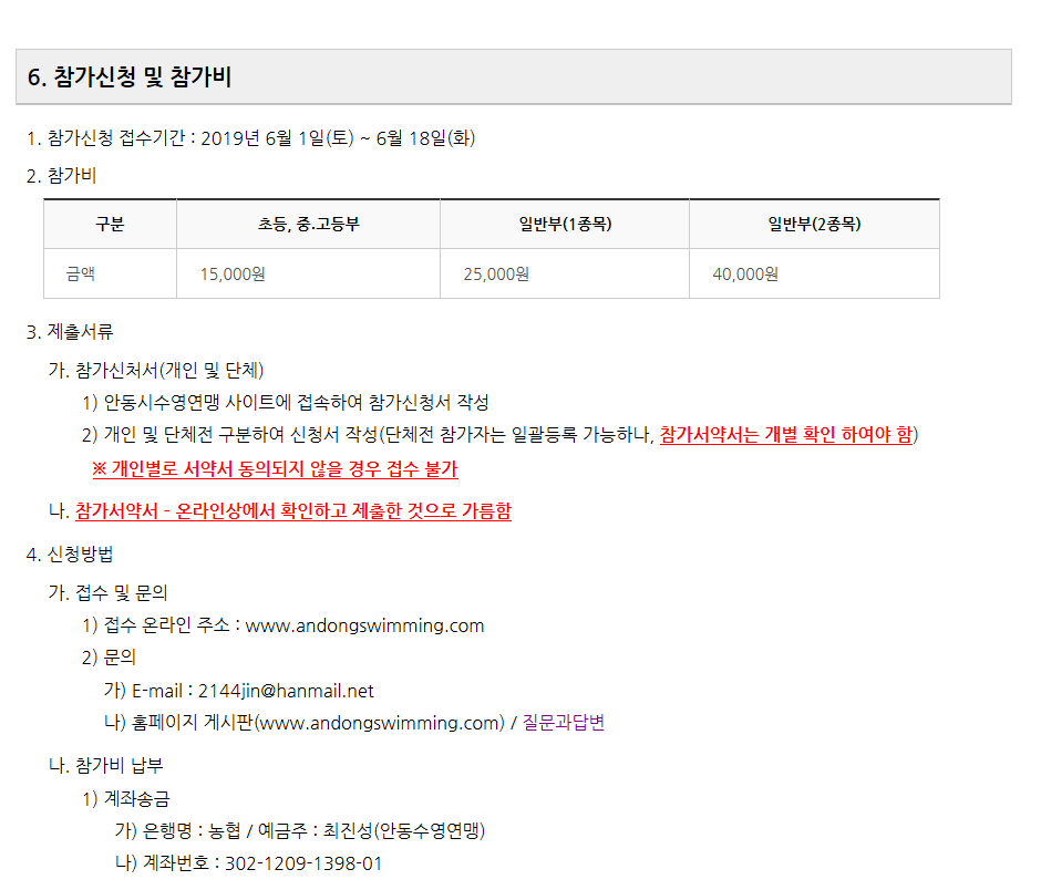 안동, 안동시, 수영, 수영연맹, 수영대회, 낙동강 수영대회