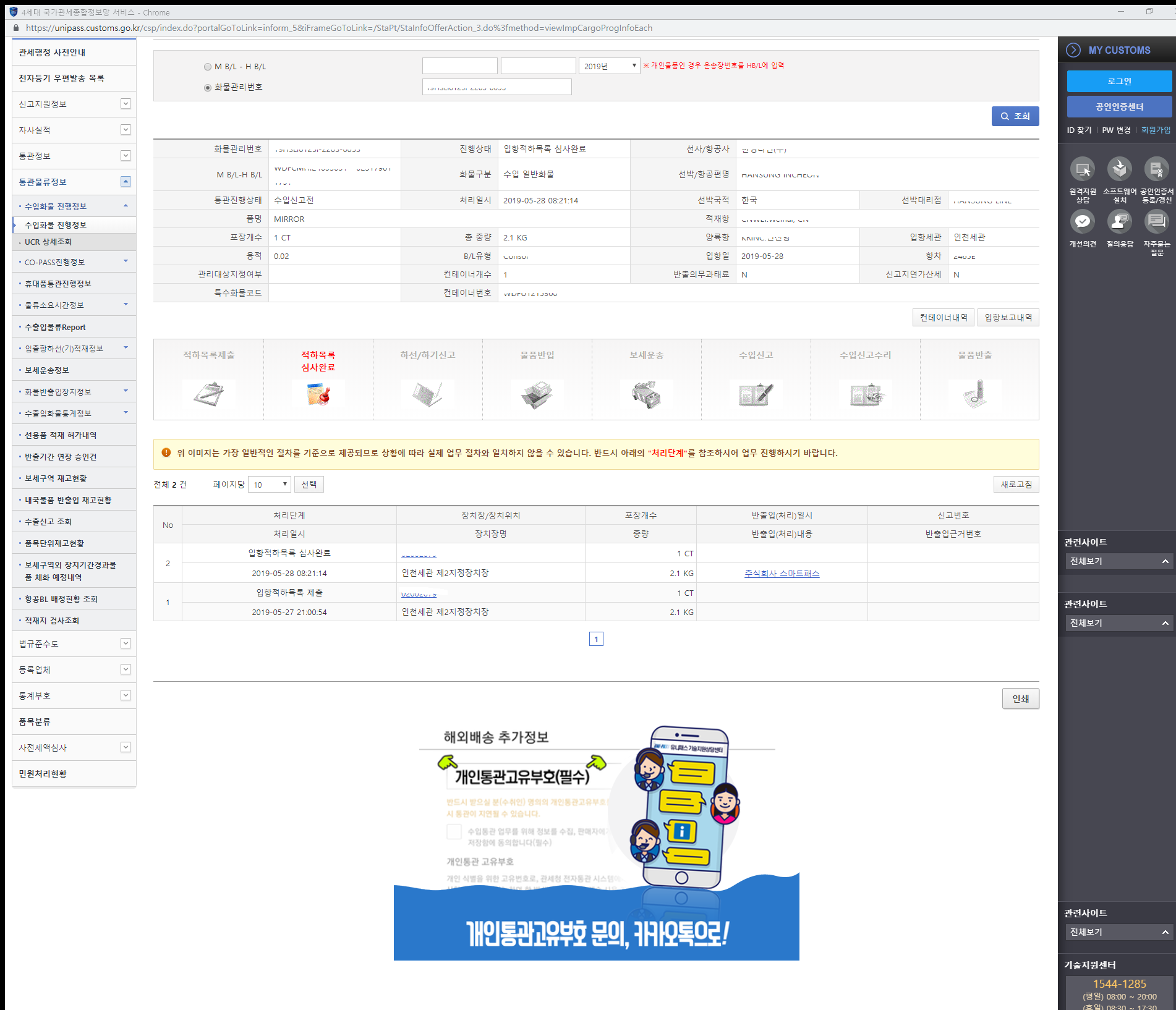 해외 직구물품 통관 조회하기