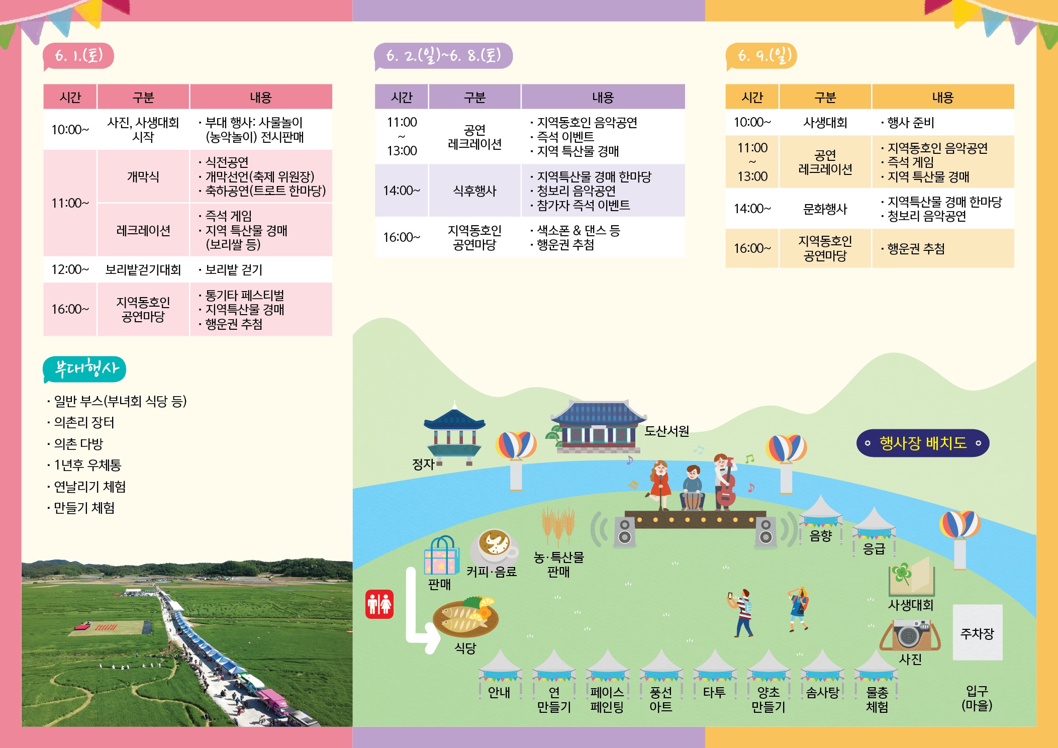 작년에 이어 올해도 도산서원 시사단 건너편(의촌리)에서 6월 1일(토) ~ 6월 9일(일)까지 청보리밭 축제가 열린다.