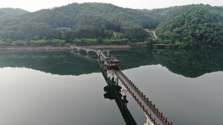 안동호에 비친 월영교의 반영을 보면 원이엄마 미투리와 꼭 닮아 있다.