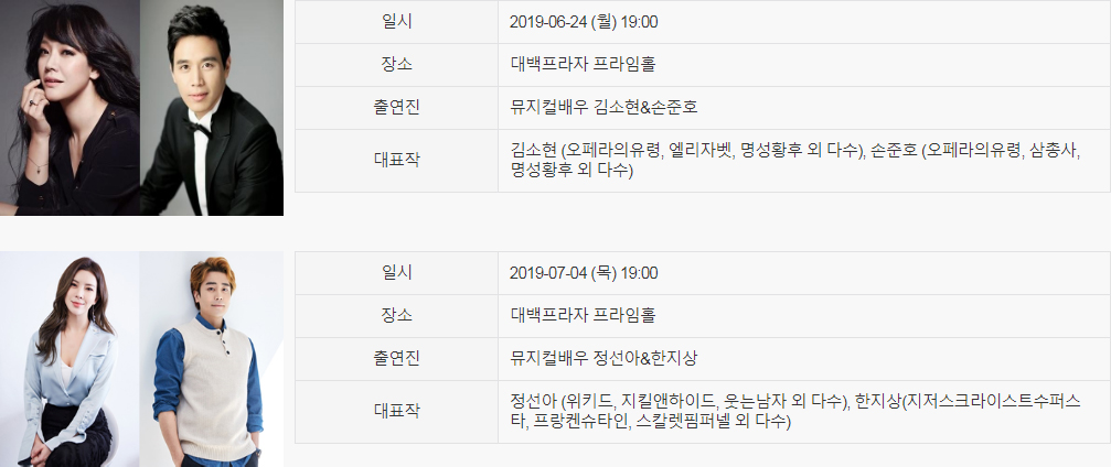 팬들을 위한 공연과 다양한 이벤트로 채워져 뮤지컬스타와 관객 모두엑 잊지 못할 추억을 선사합니다.