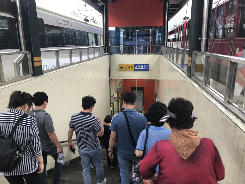 여기서는 많은 사람들이 내려 먹거리 장터와 승부역을 구경하고 사진을 찍었다.