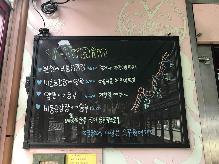 얼마 후 중부내륙관광열차가 먼저 출발하고 뒤이어 V-train 탑승 시간을 알리는 안내방송이 나왔다.