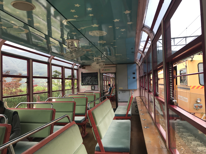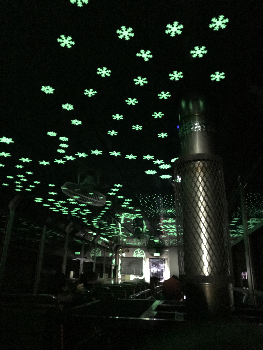 1호차, 3호차의 객차 천장에는 야광 스티커가 붙어 있어 굴을 지날 때 마다 열차는 별천지가 된다.