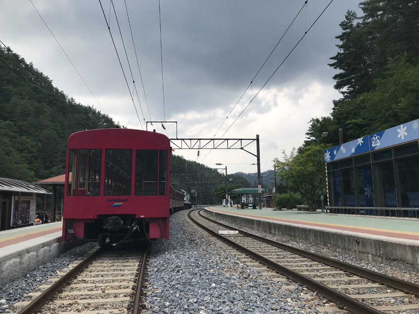 협곡열차는 객차만 3량 연결해 운행하기 때문에 화장실 칸이 없다.