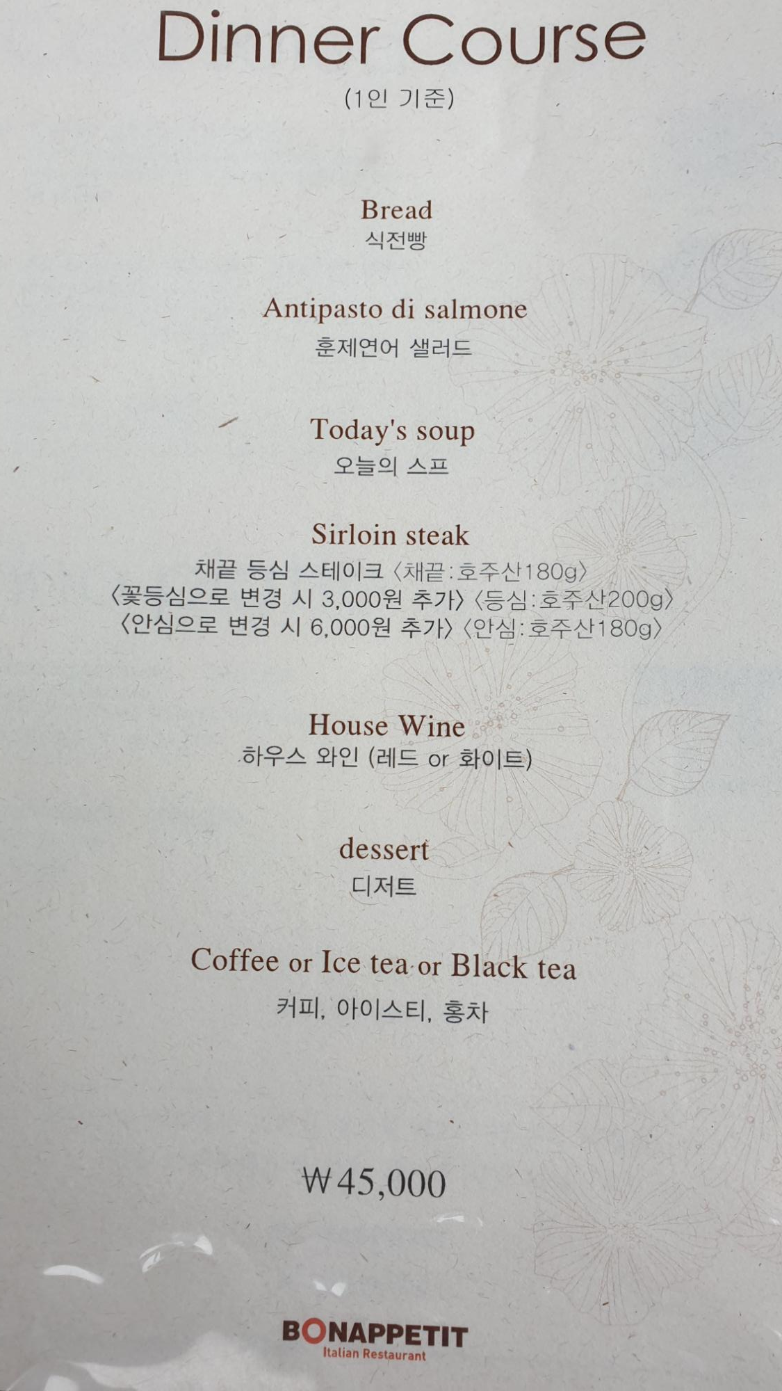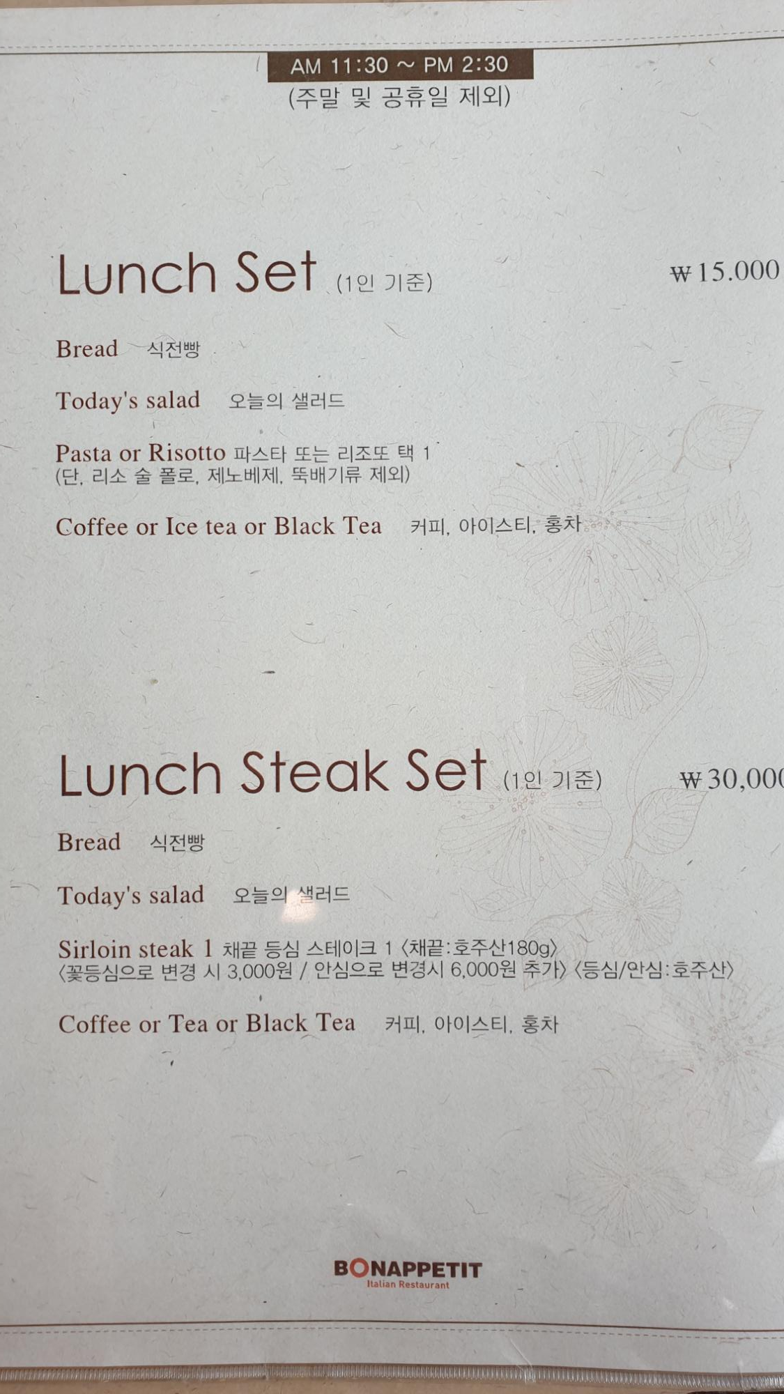 안동 보나베띠는 평일 런치가 매우매우 저렴하다.