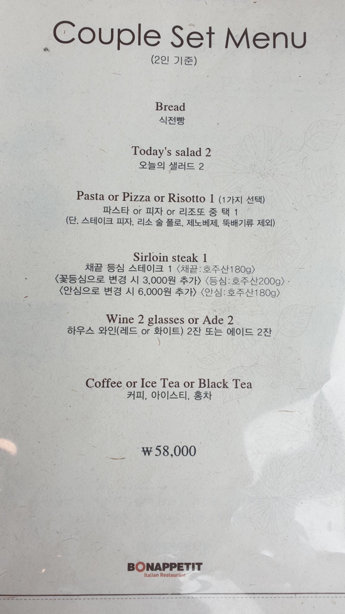 사실 그냥 편하게 가기에는 양에 비해 가격대가 좀 있는 편이라 안동 보나베띠는 기념일 같은 이벤트가 있을 때 주로 찾게 되는 곳이다.