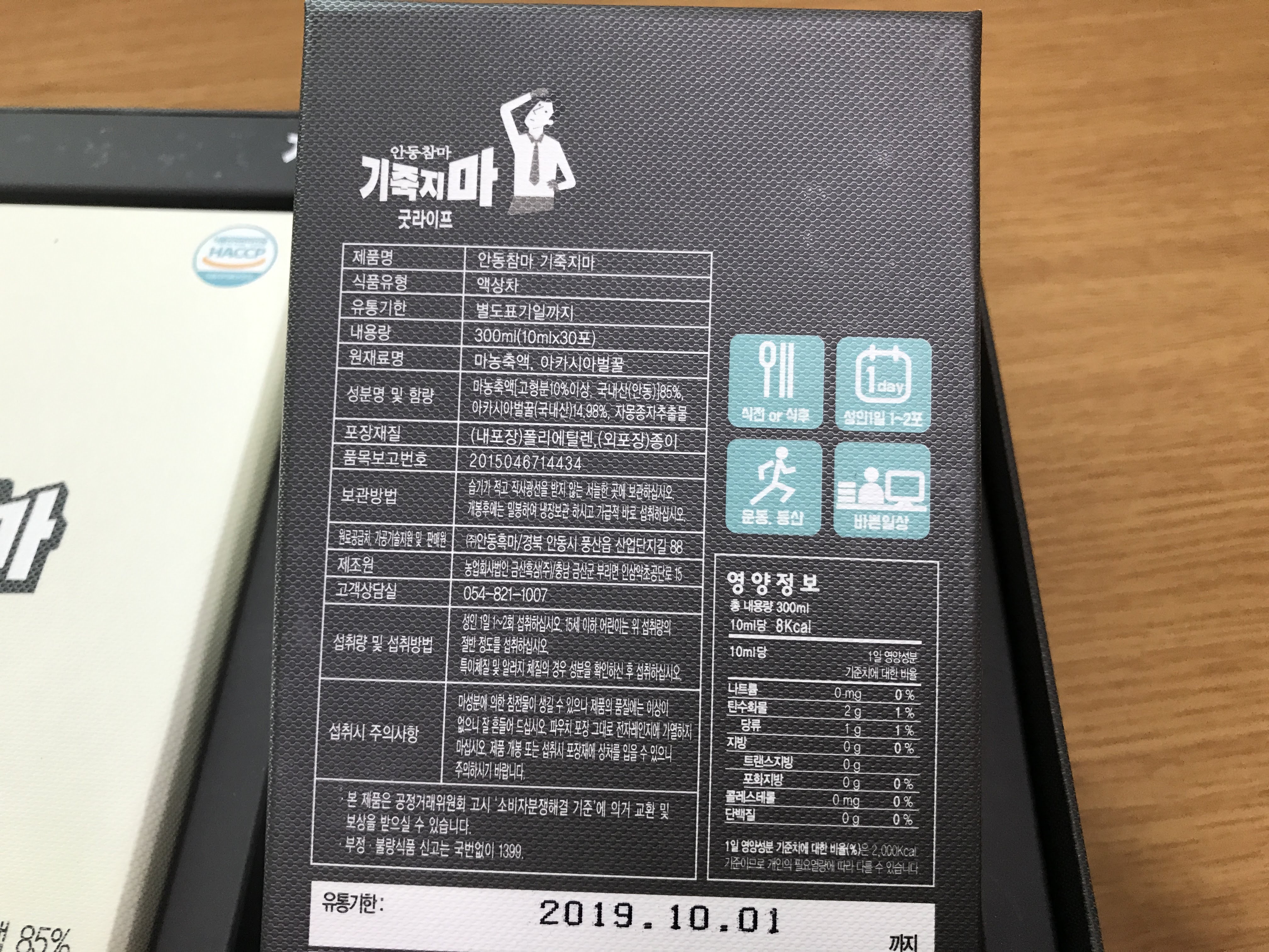 액상 제품 중에서도 원재료(마, 꿀)의 함량이 높은 편이다.