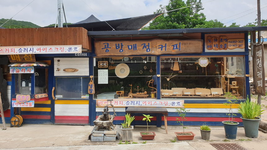 하회마을 도마가 유명한데 병산서원에서도 도마를 제작하는 공방이 있고 공방 옆에 커피집이 있다.