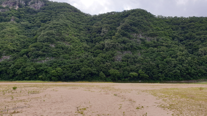 병산서원 앞, 낙동강변에는 넓은 모래사장(백사장)이 있다.