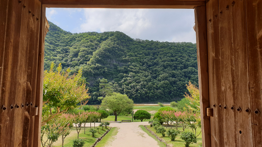 만대루 앞으로 낙동강과 병산의 풍광이 병풍처럼 펼쳐진다.