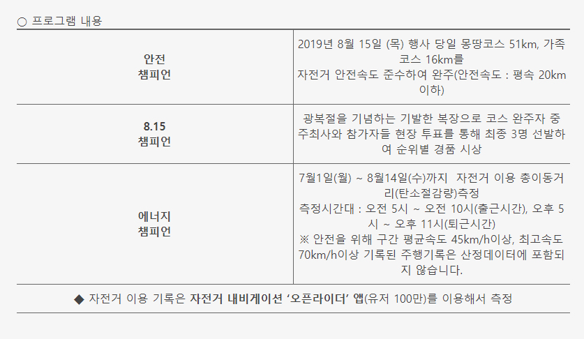 참가방법 : 공식 홈페이지 및 오픈라이더앱을 통한 사전예약(오픈라이더앱 설치)