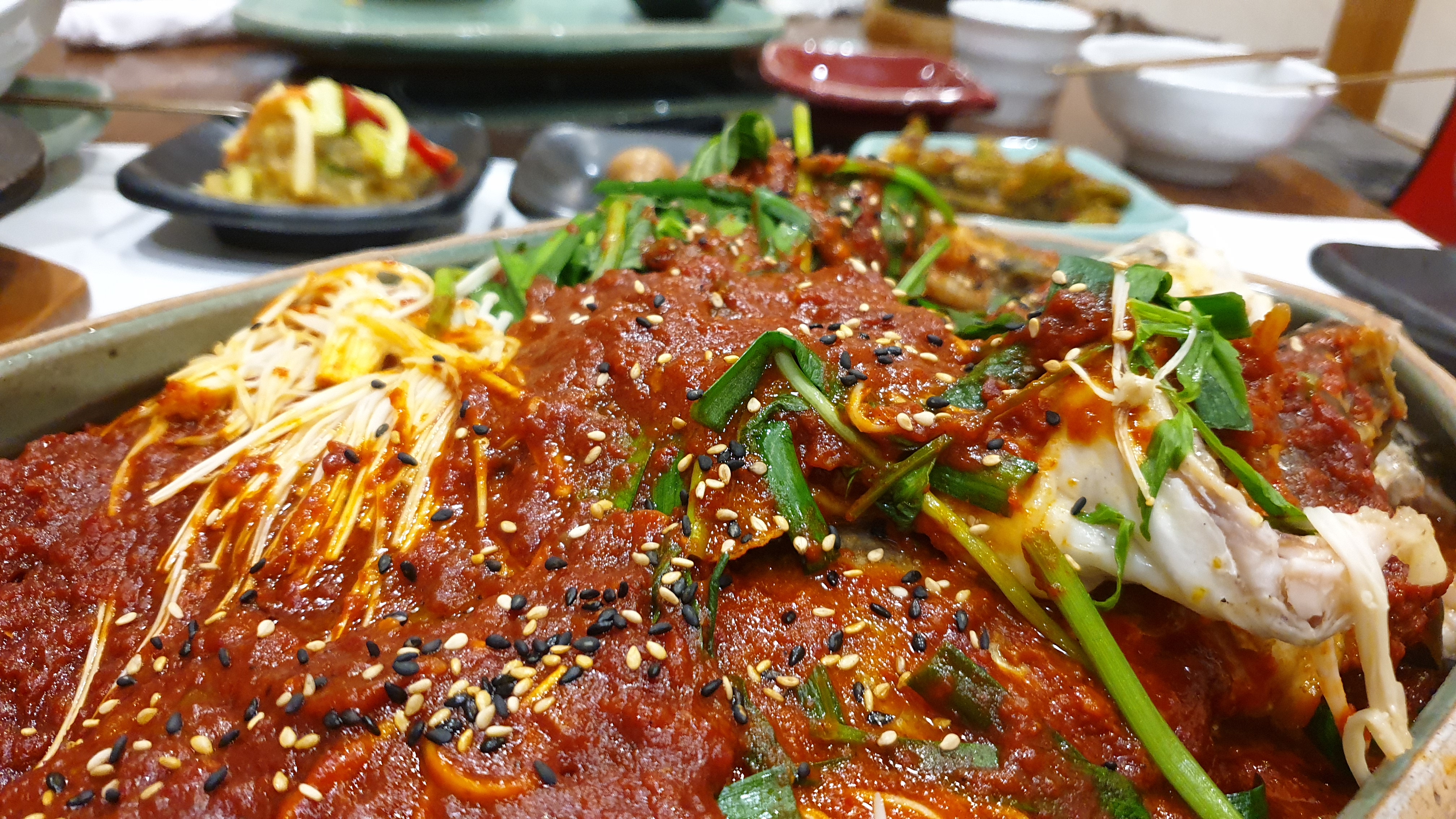 곱게 빨간 양념옷 입은 잉어.
