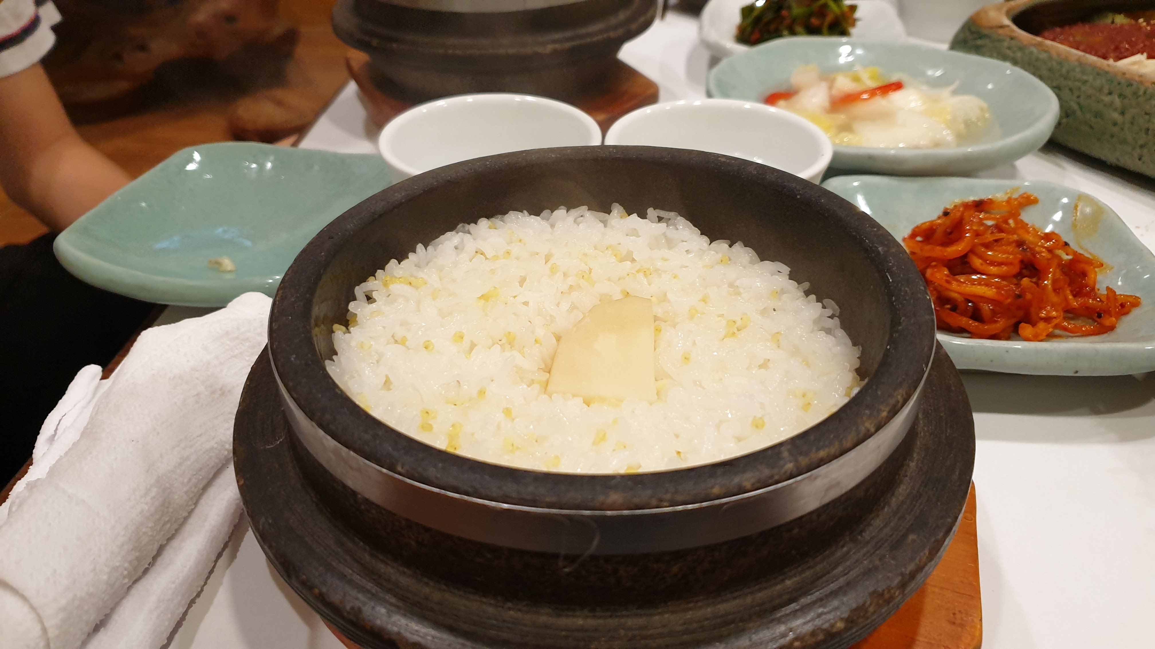 뜨끈한 밥에 양념 비벼 먹으려고 돌솥밥으로 주문.