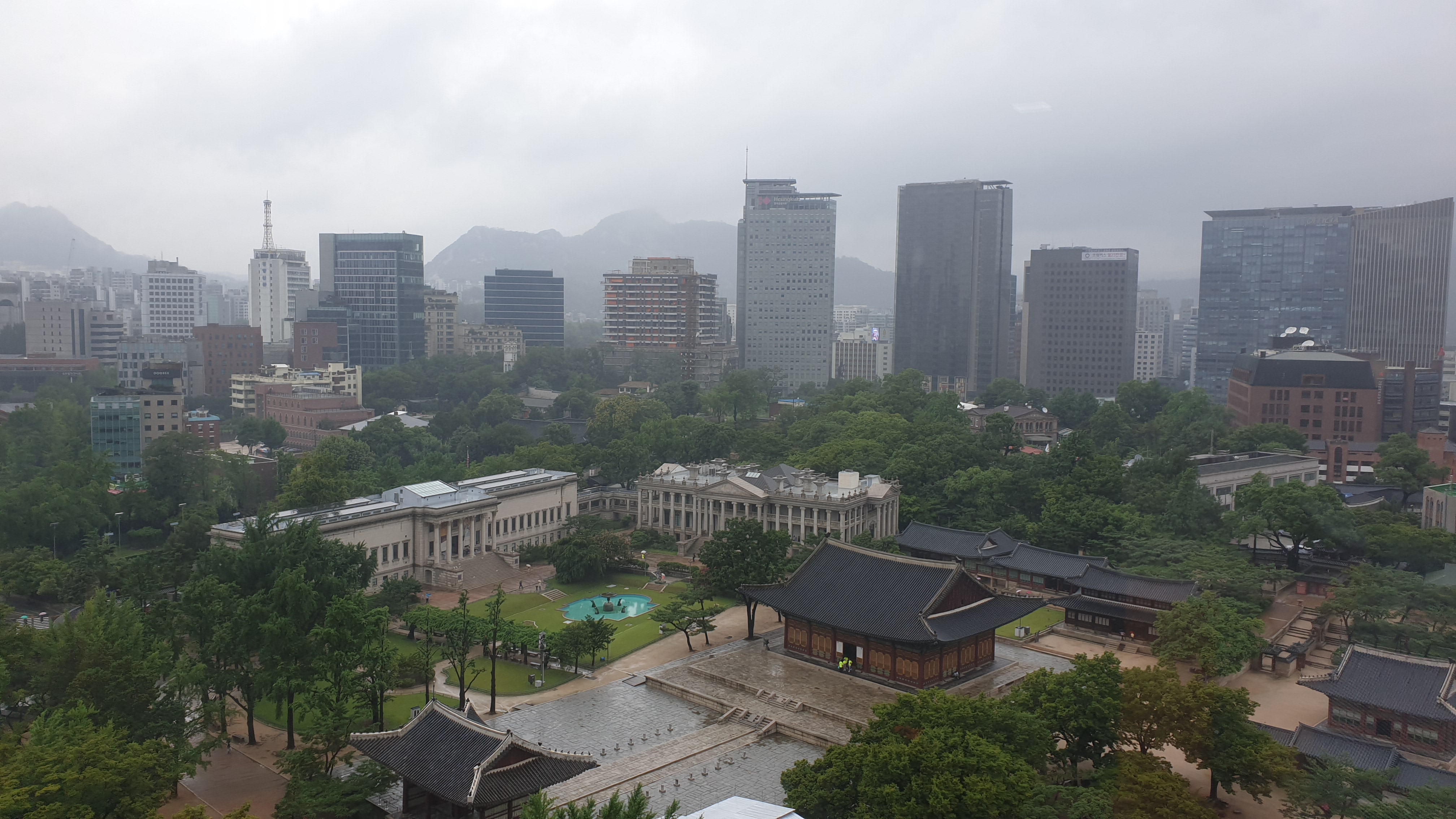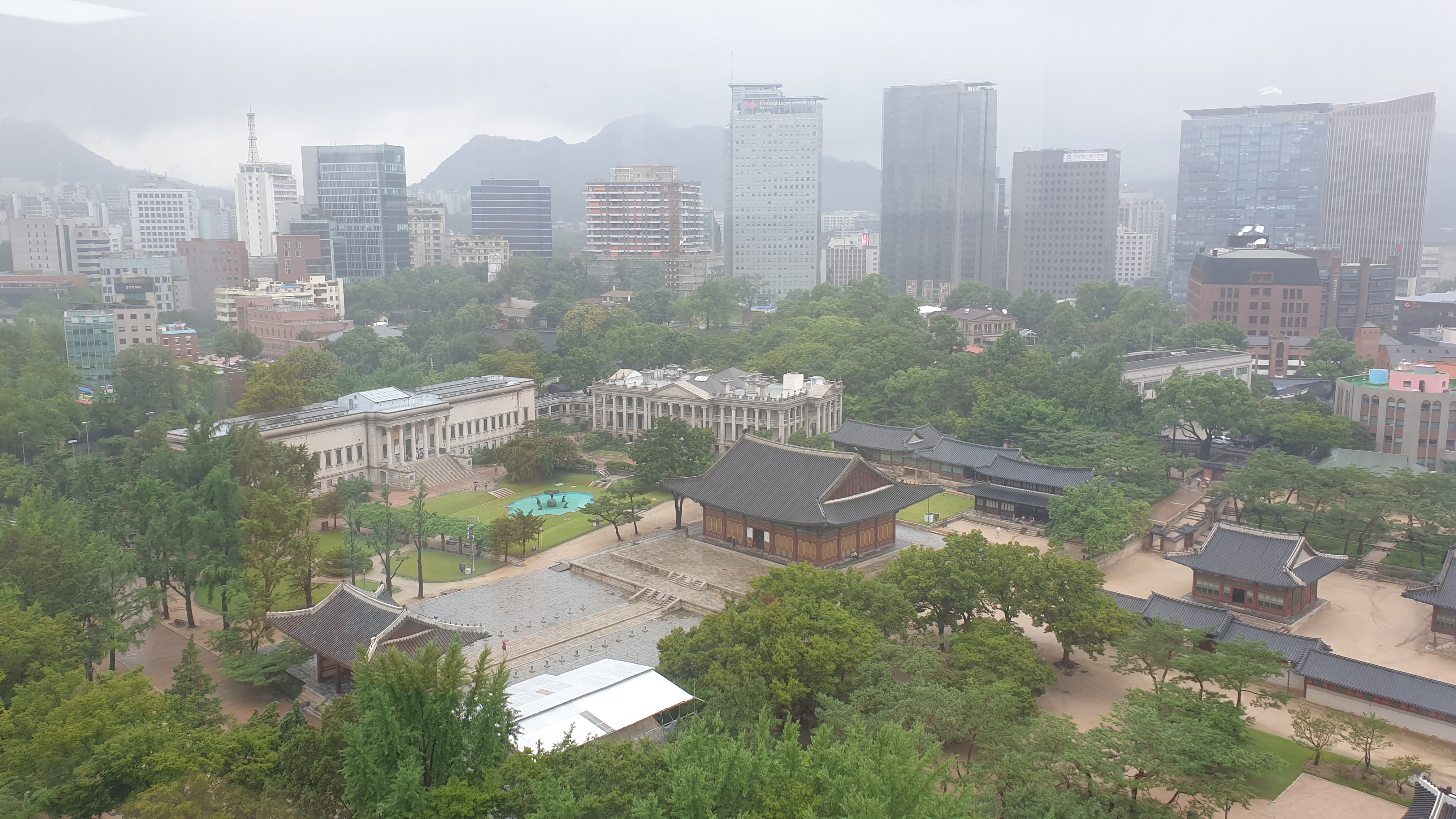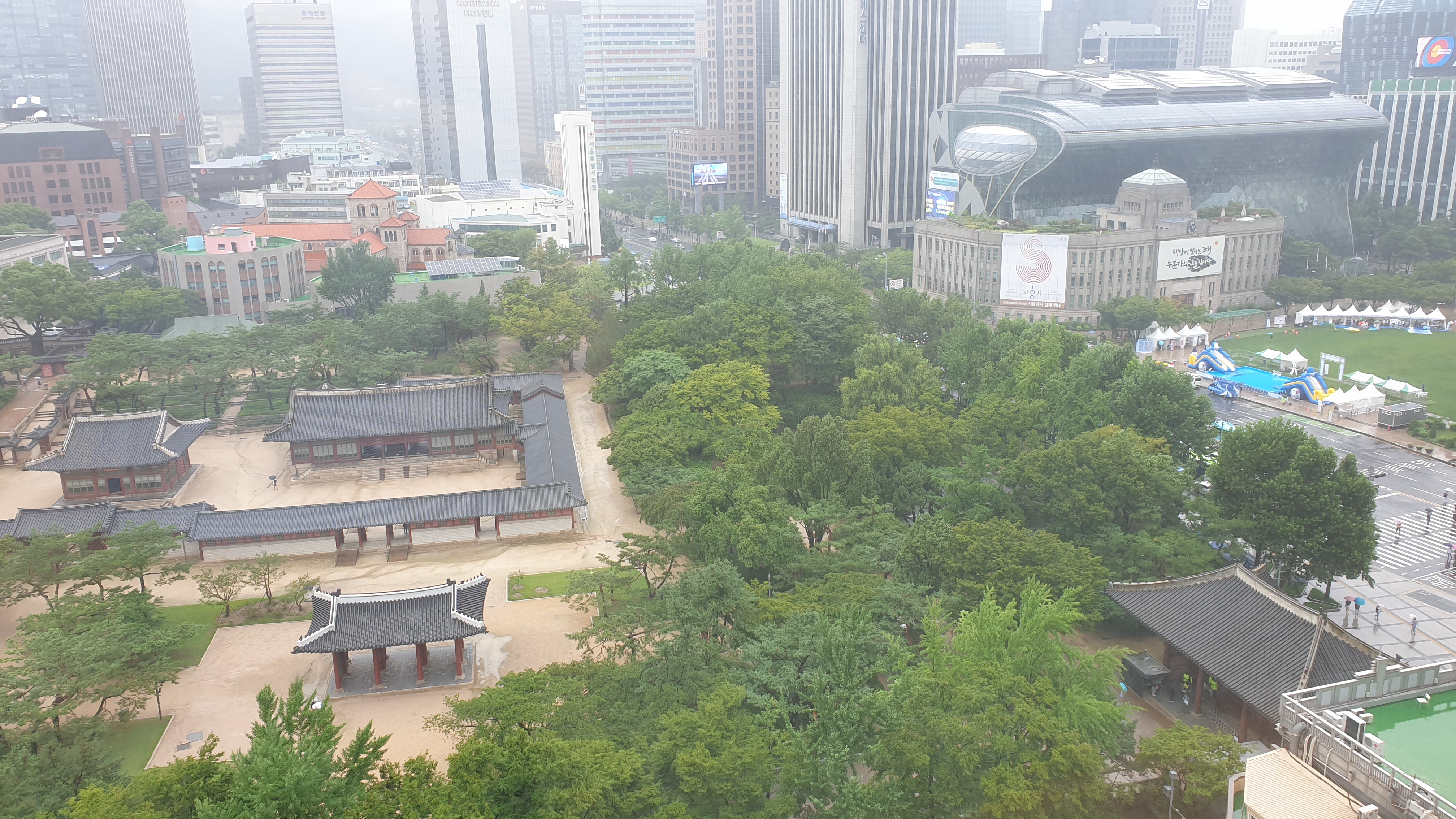 푸른하늘과 하얀 구름, 높게 올라간 빌딩 숲 앞으로 고풍스런 고궁과 구한말 서양식 건물의 조화가 멋진, 그런 풍경을 보고 싶었는데 날씨가 따라주지 않는다.