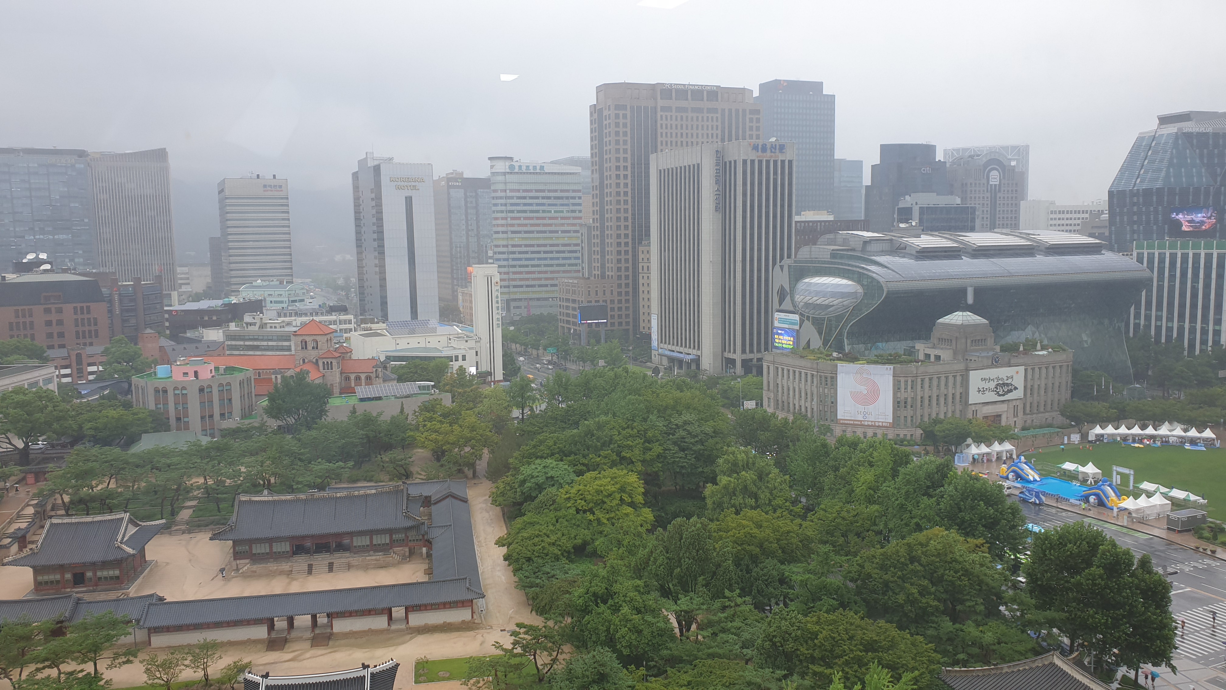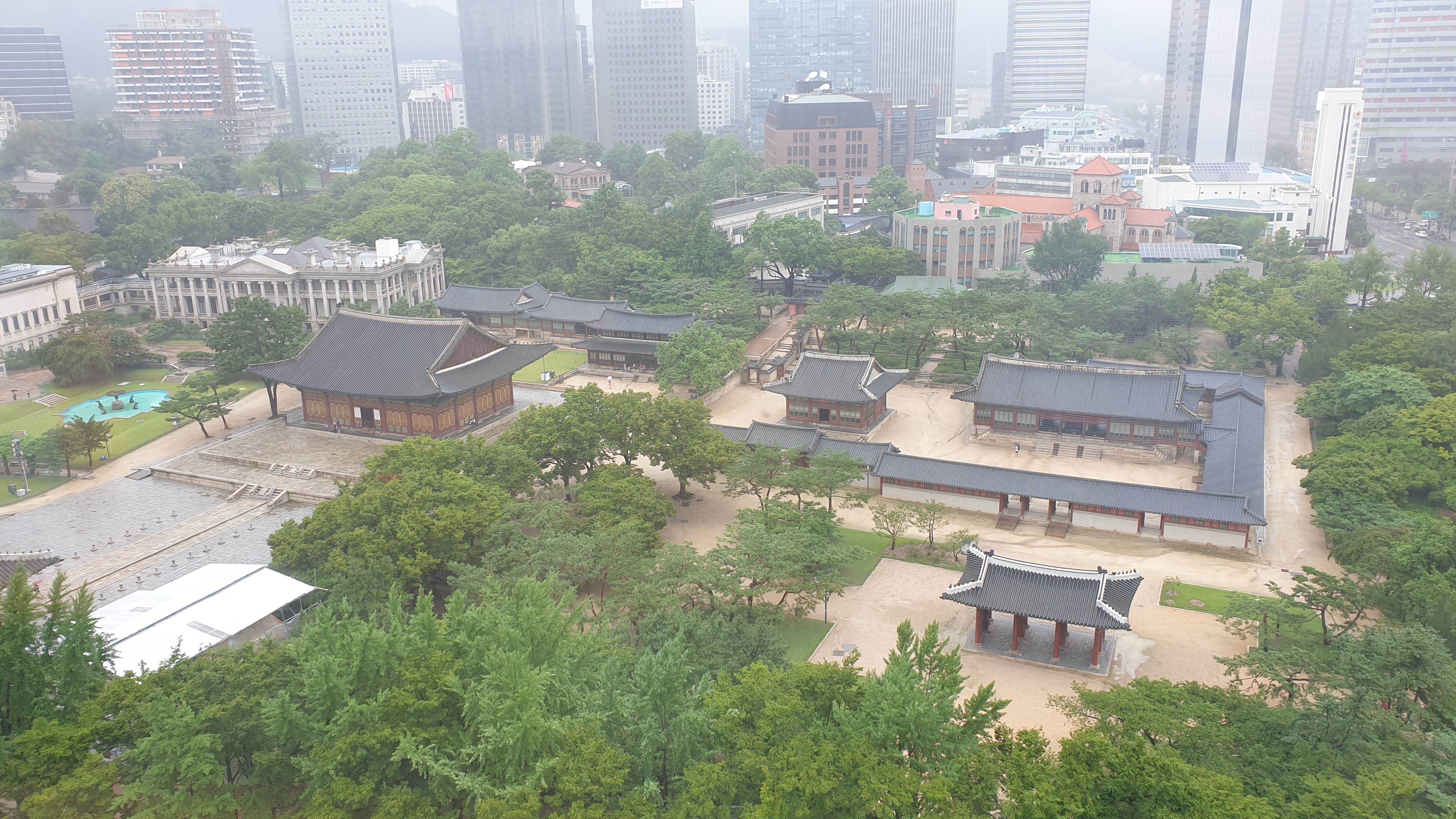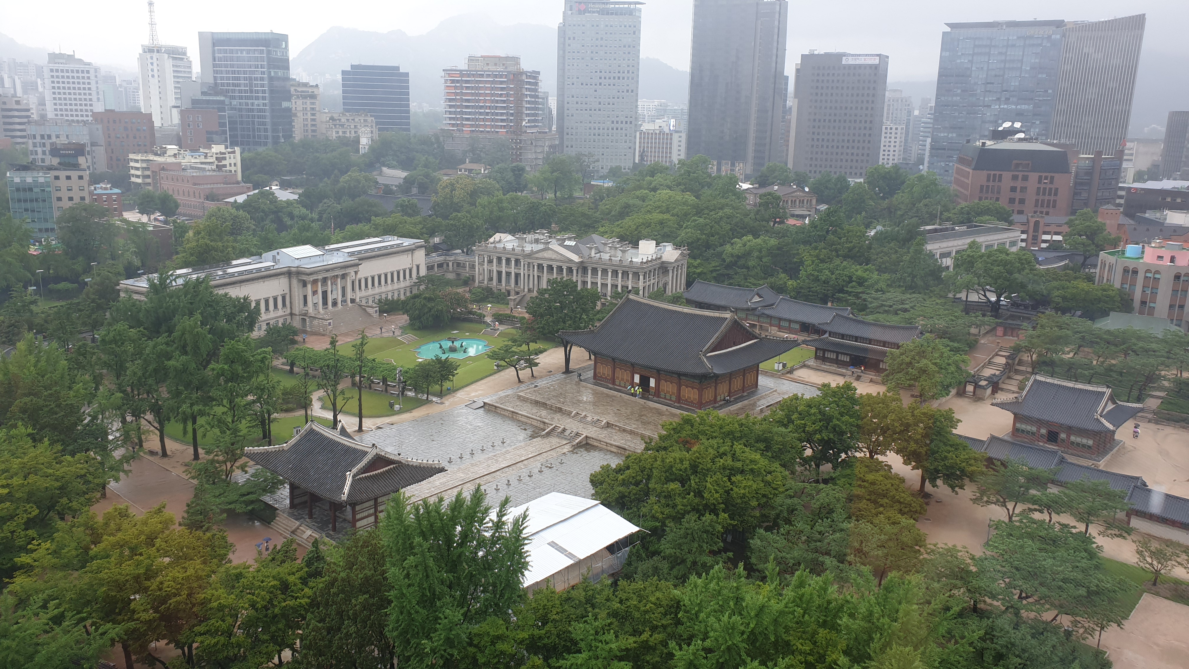 푸른하늘과 하얀 구름, 높게 올라간 빌딩 숲 앞으로 고풍스런 고궁과 구한말 서양식 건물의 조화가 멋진, 그런 풍경을 보고 싶었는데 날씨가 따라주지 않는다.