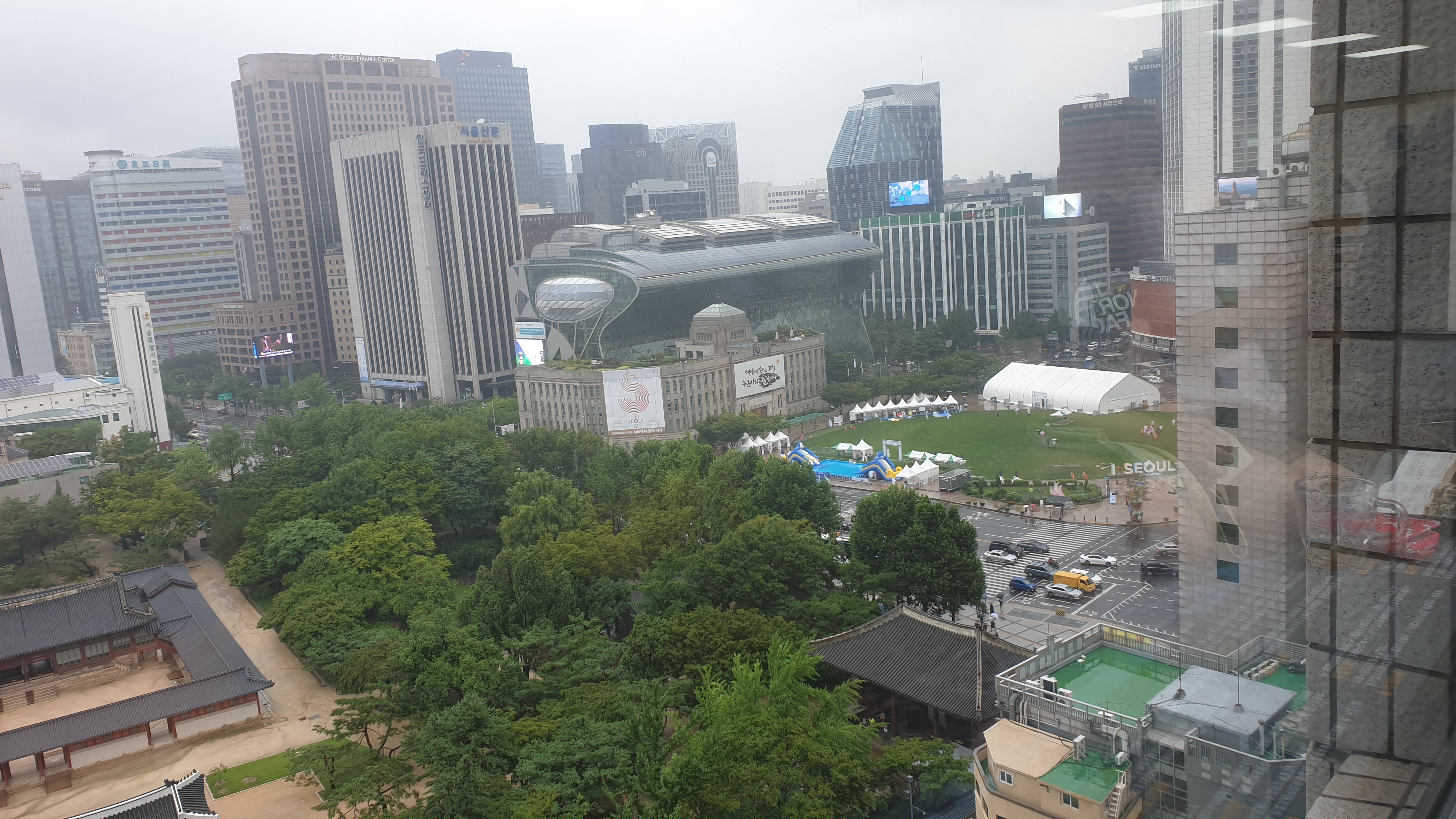 서울시청사와 서울광장과 함께 방금 전 둘러봤던 빗물 축제 현장이 보인다.
