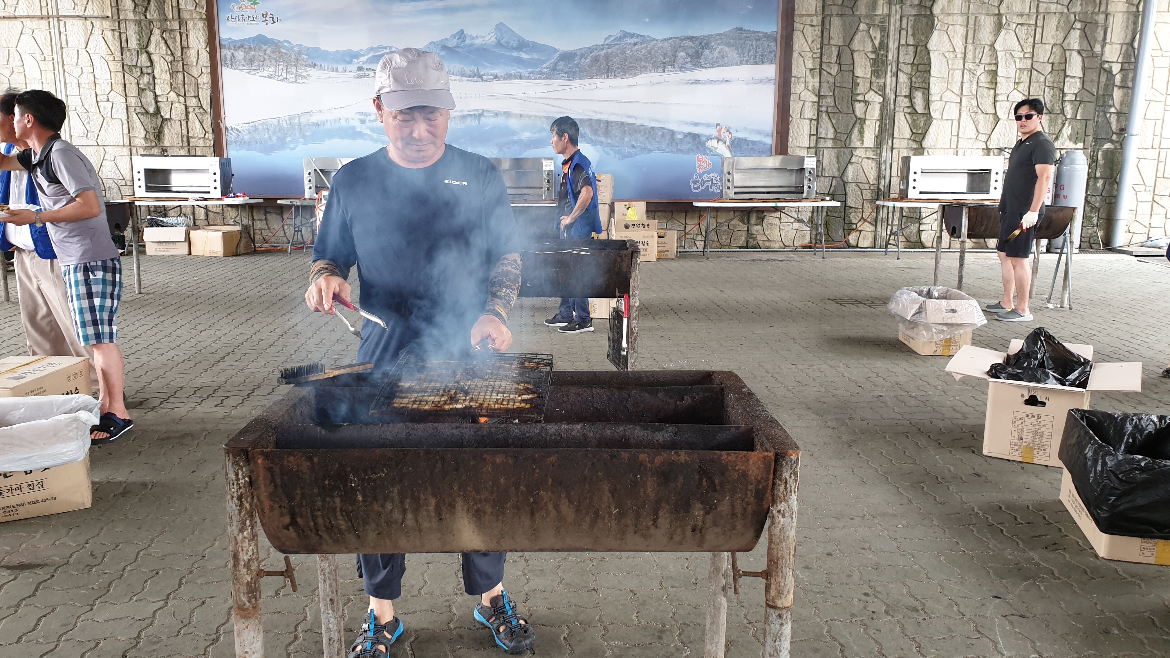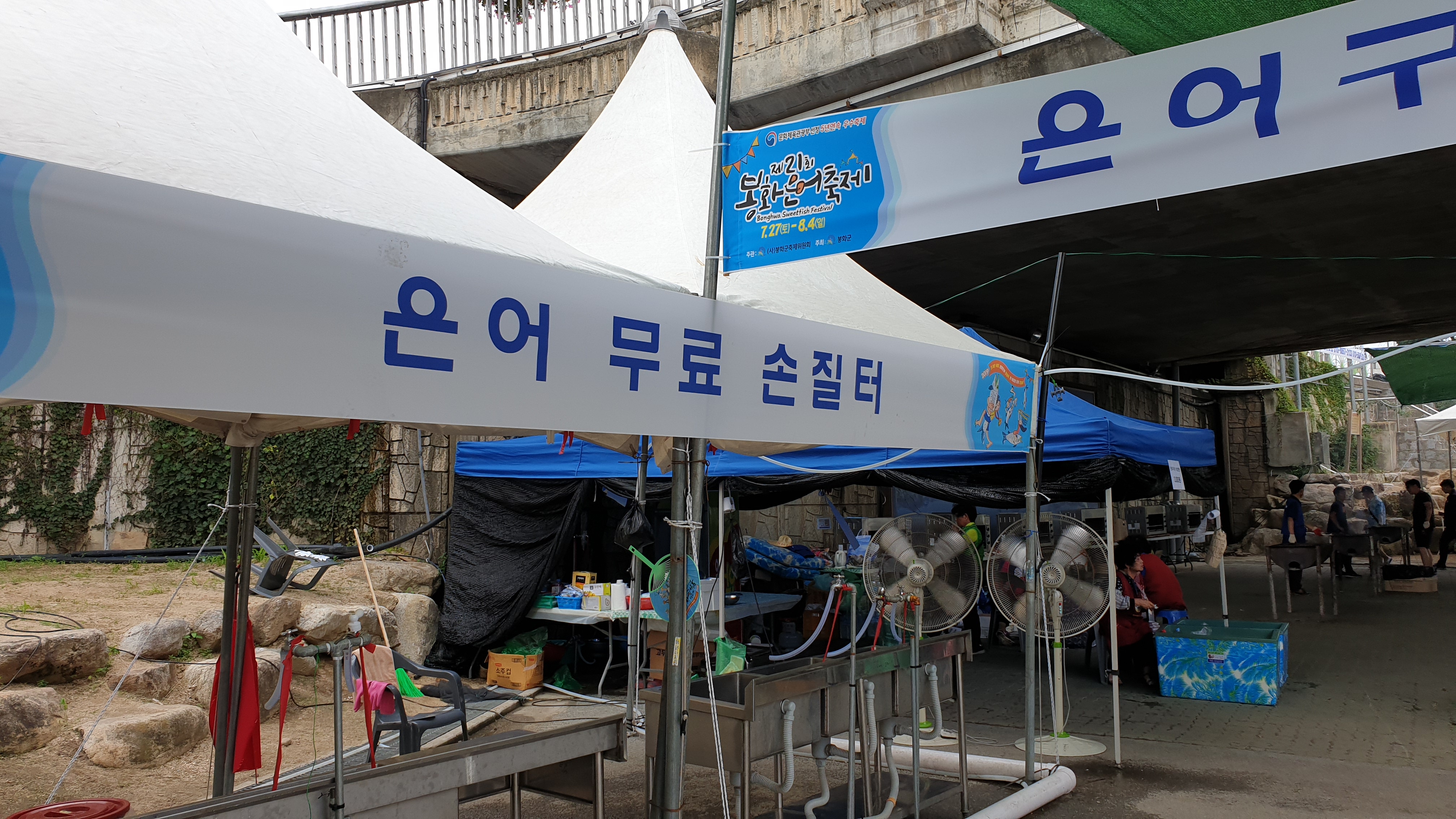 잡은 은어를 바로 옆 은어 무료 손질터에서 가서 손질 후 여기에 가져오면 구워 먹을 수 있다.