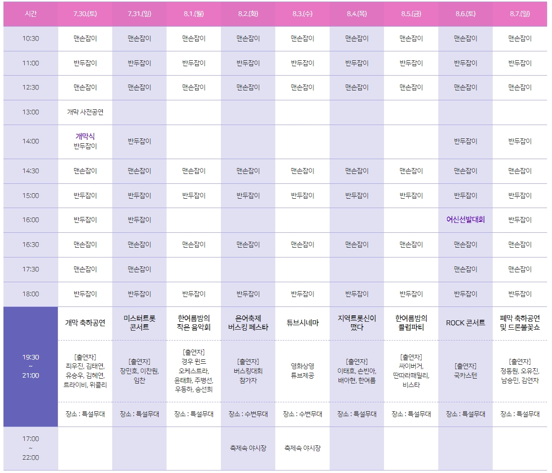 초대가수는 모모랜드, 마마무, 송가인이 온다고 해서 관광객들의 기대가 크다.