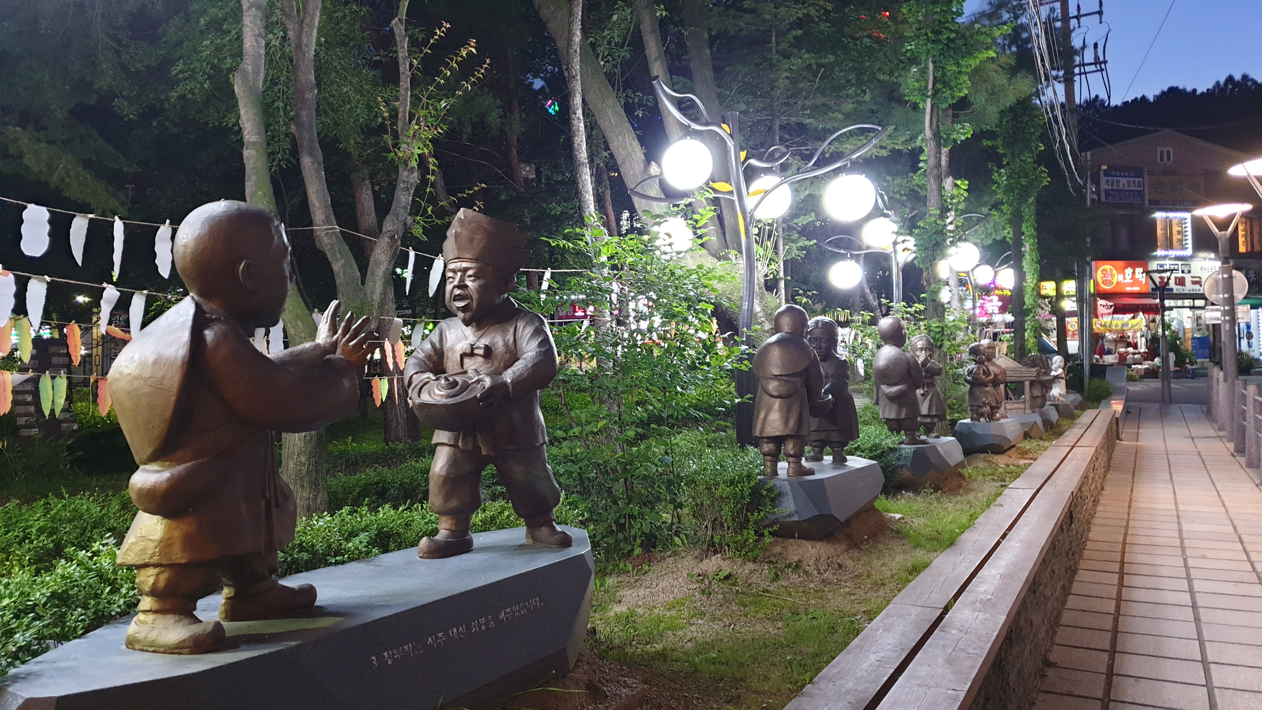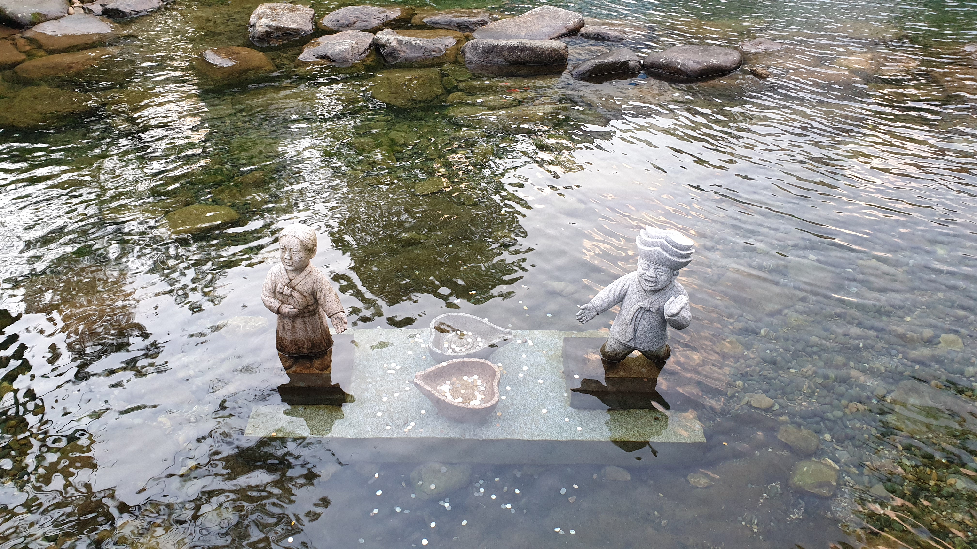 황부자와 며느리 이야기를 작은 동상으로 만들어 놓았다.