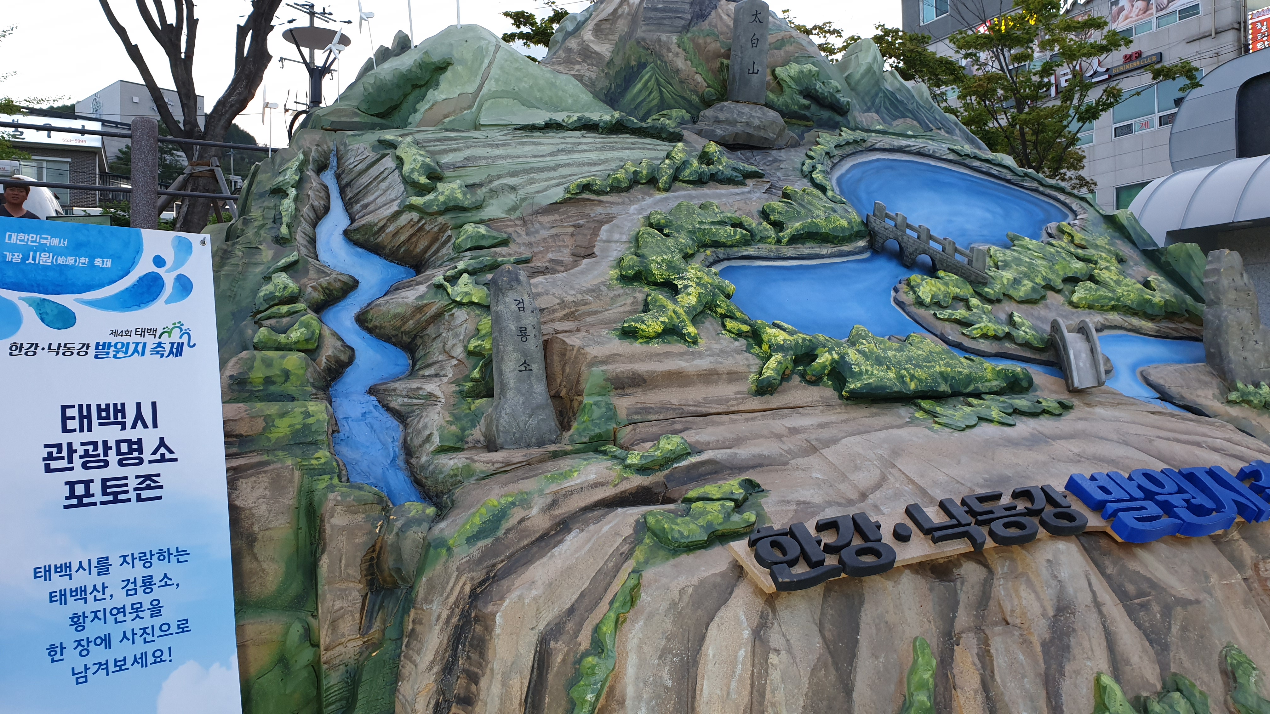 태백산, 검룡소, 황지연못을 그대로 본 따서 만든 축제장 포토존