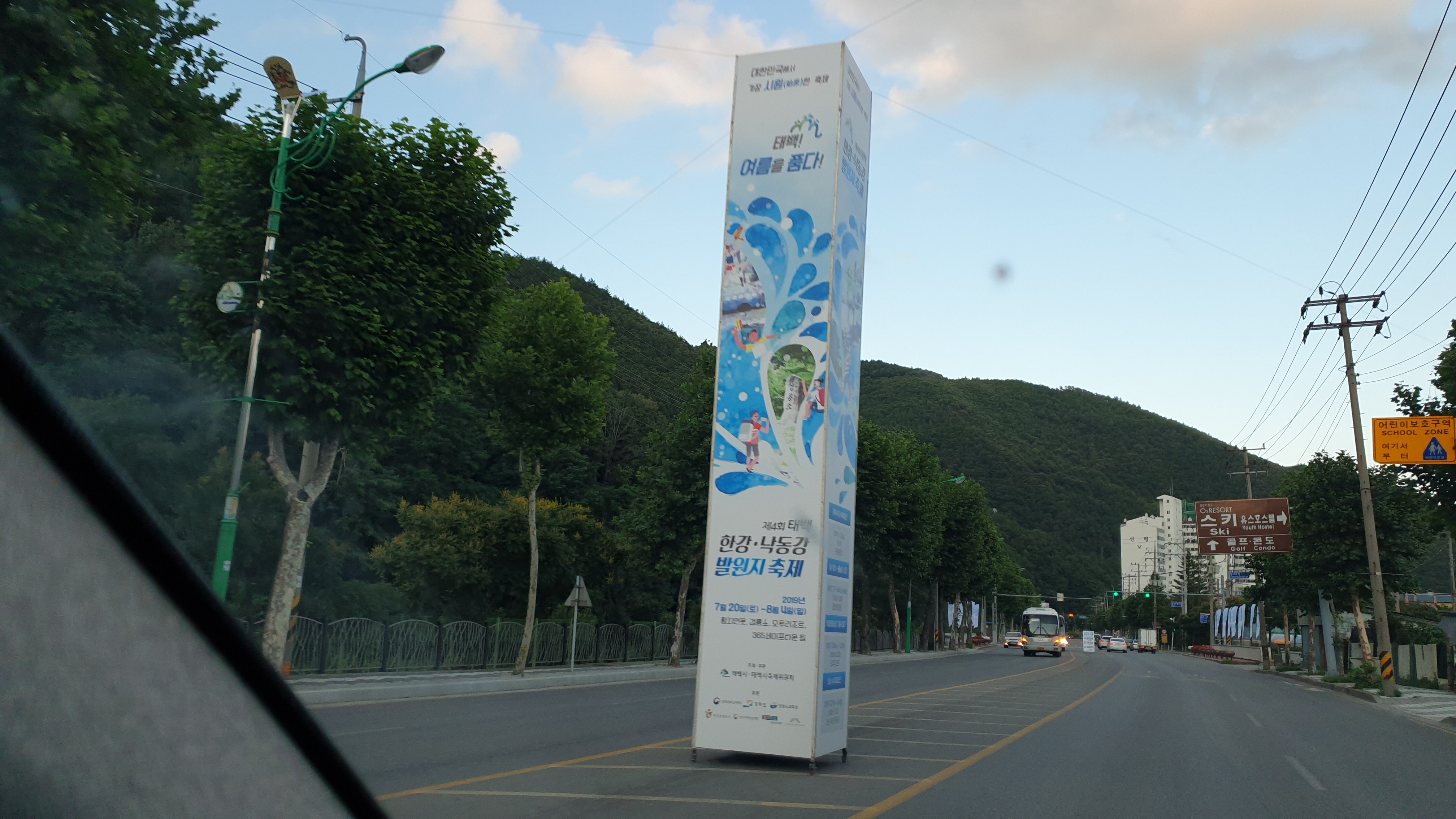 태백 시내로 가는 길. 황지연못에서 한강 낙동강 발원지축제를 알리는 홍보물이 눈에 띄었다.