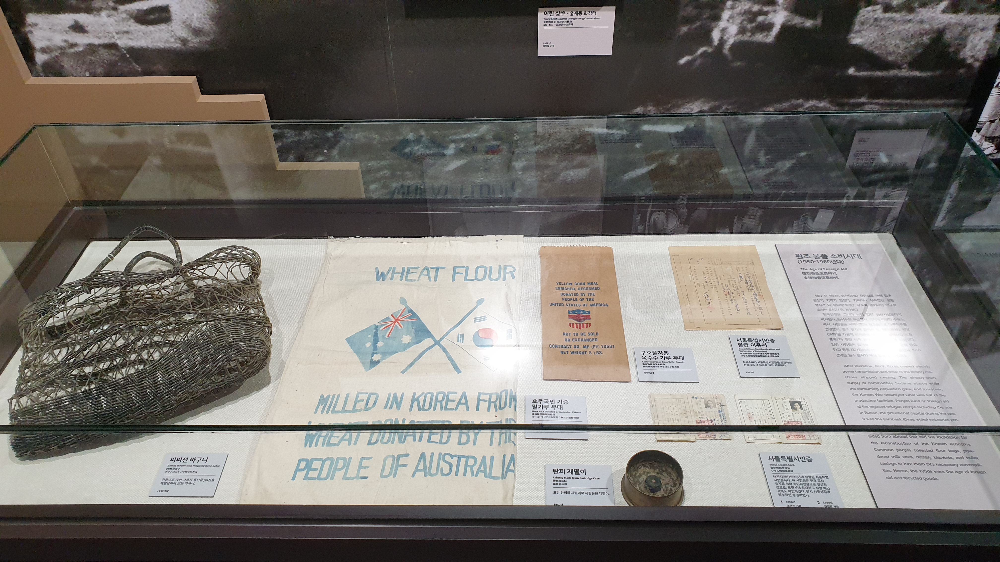 전쟁 중 군인들이 통신선으로 사용하던 pp선을 꼬아 바구니를 만들어 쓰고, 포탄의 탄피를 재떨이로 사용하기도 했다. 구호물자로 받은 밀가루와 옥수수 가루 포대도 전시되어 있었다.