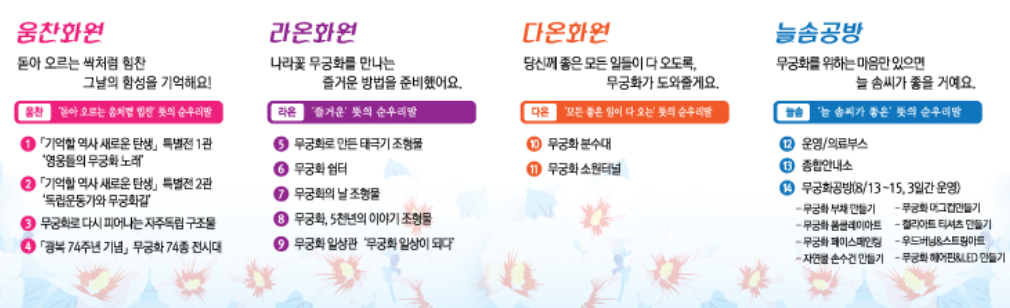 13~15일에는 매일 4회씩 무궁화해설투어를 진행하여