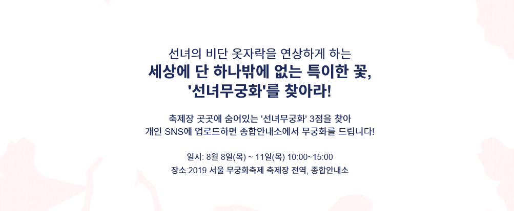 선녀무궁화3점을찾아 개인SNS등업시 종합안내소에서 무궁화를 드립니다.